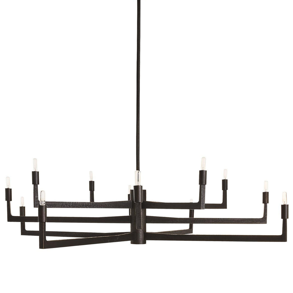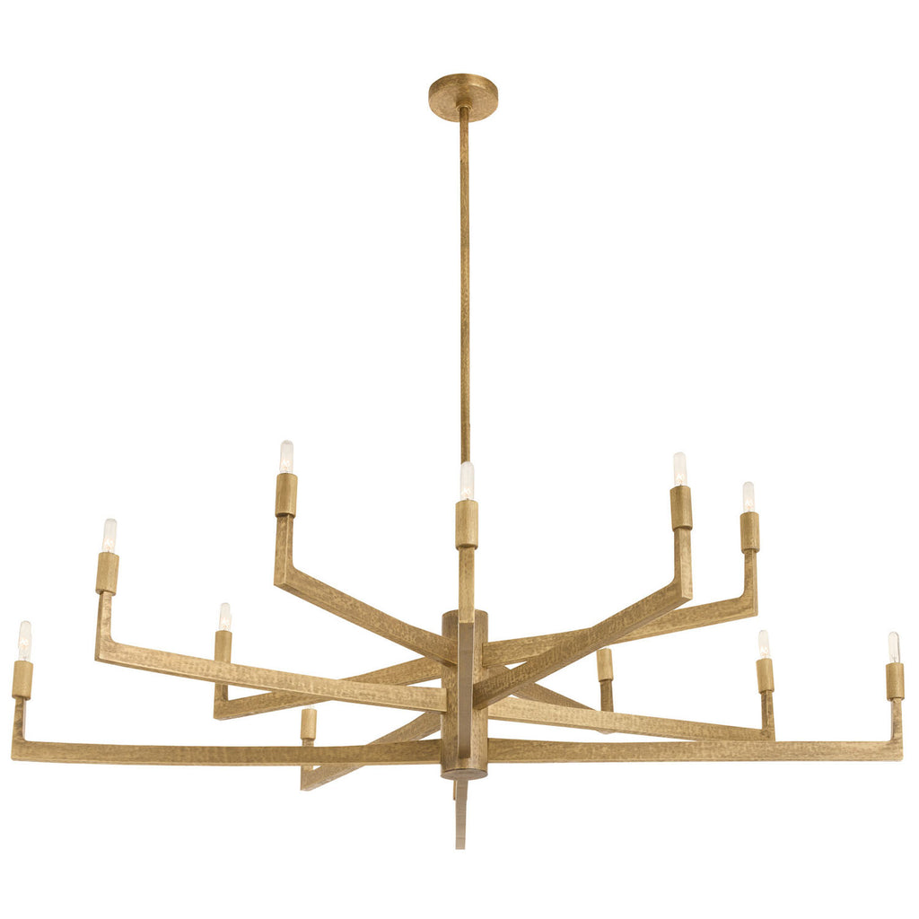 Unexpectedly full of texture, this chandelier's slender profile is composed of chattered iron, which has been finished in antique brass. A focal point for any modern setting, it is ideally sized for larger living spaces or bedrooms. Certified for damp locations and intended for interior use. Finish will vary.