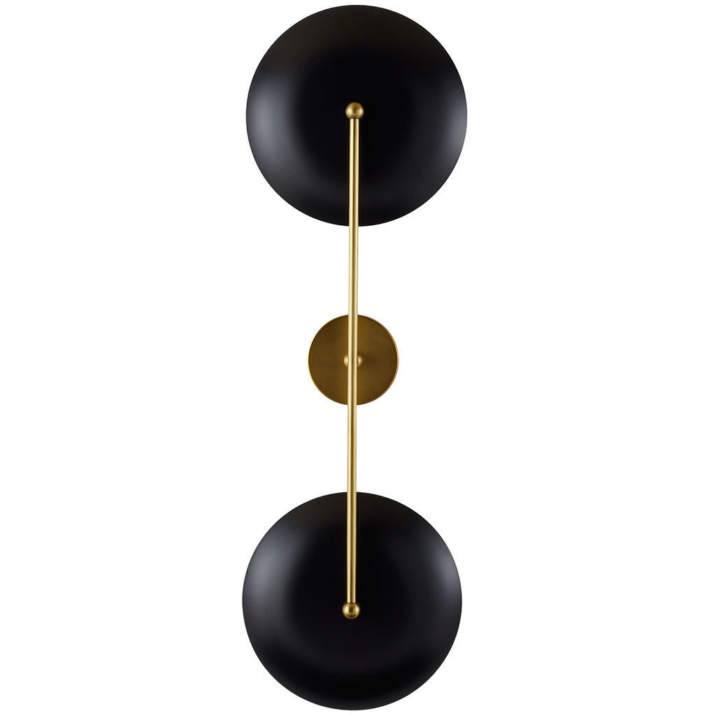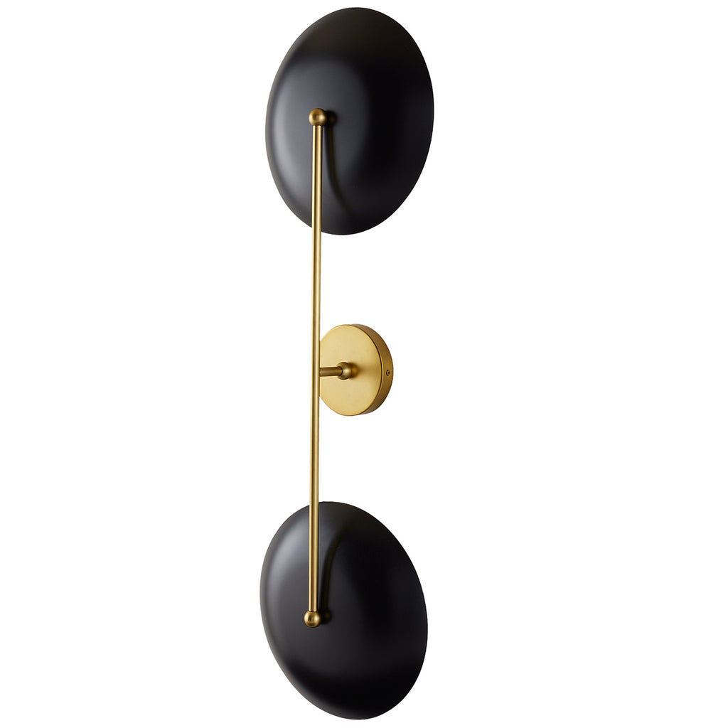 A spin-off of our stylish Arteriors Griffith, this delicate sconce balances a severe bronze finish with an elegant antique brass frame. The bronze plates face forward to diffuse the light and create a warm, even glow. Created with ada depth, it is an ideal option for corridor lighting.