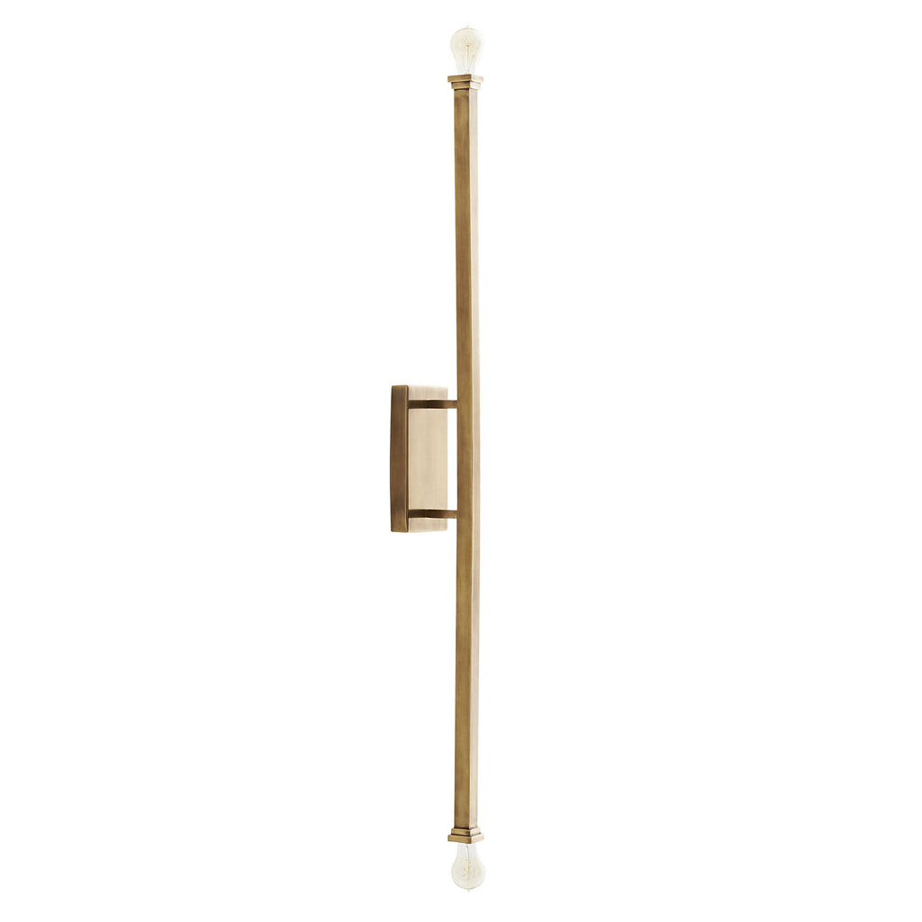 Arteriors Home lighting embodies the perfect balance of form and function, creating an ambiance that is both captivating and inviting. With an emphasis on functionality, versatility, and visual appeal, the Arteriors Home wall sconce fixtures embrace both form and function, elevating any environment with timeless allure. Consisting of a single hand-forged stem and dual Edison-style candelabra bulbs, our two-light sconce, finished in gold, is a truly minimalist expression of traditional ironwork. Use it in pairs for classical symmetry, or in numbers to line a foyer or hallway.