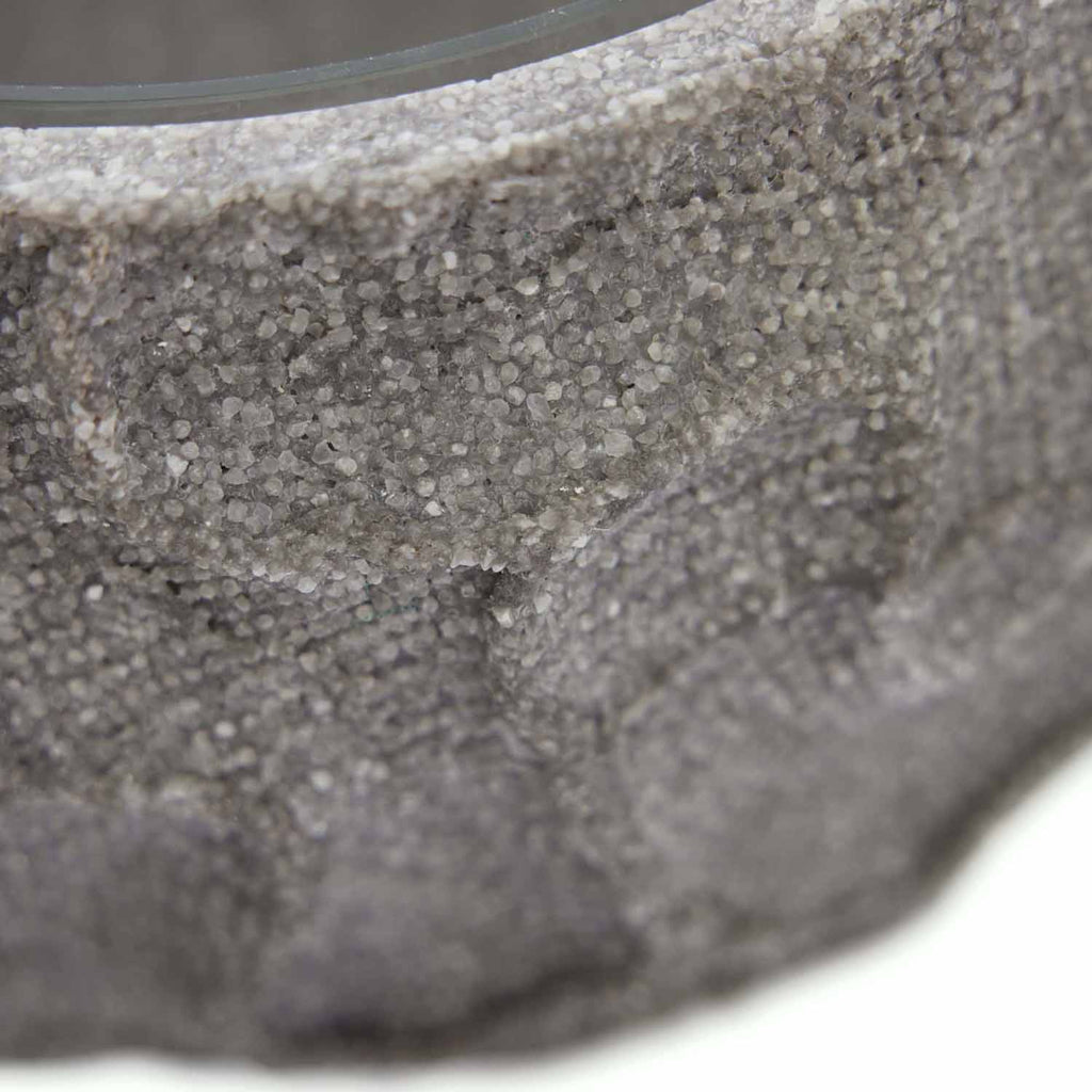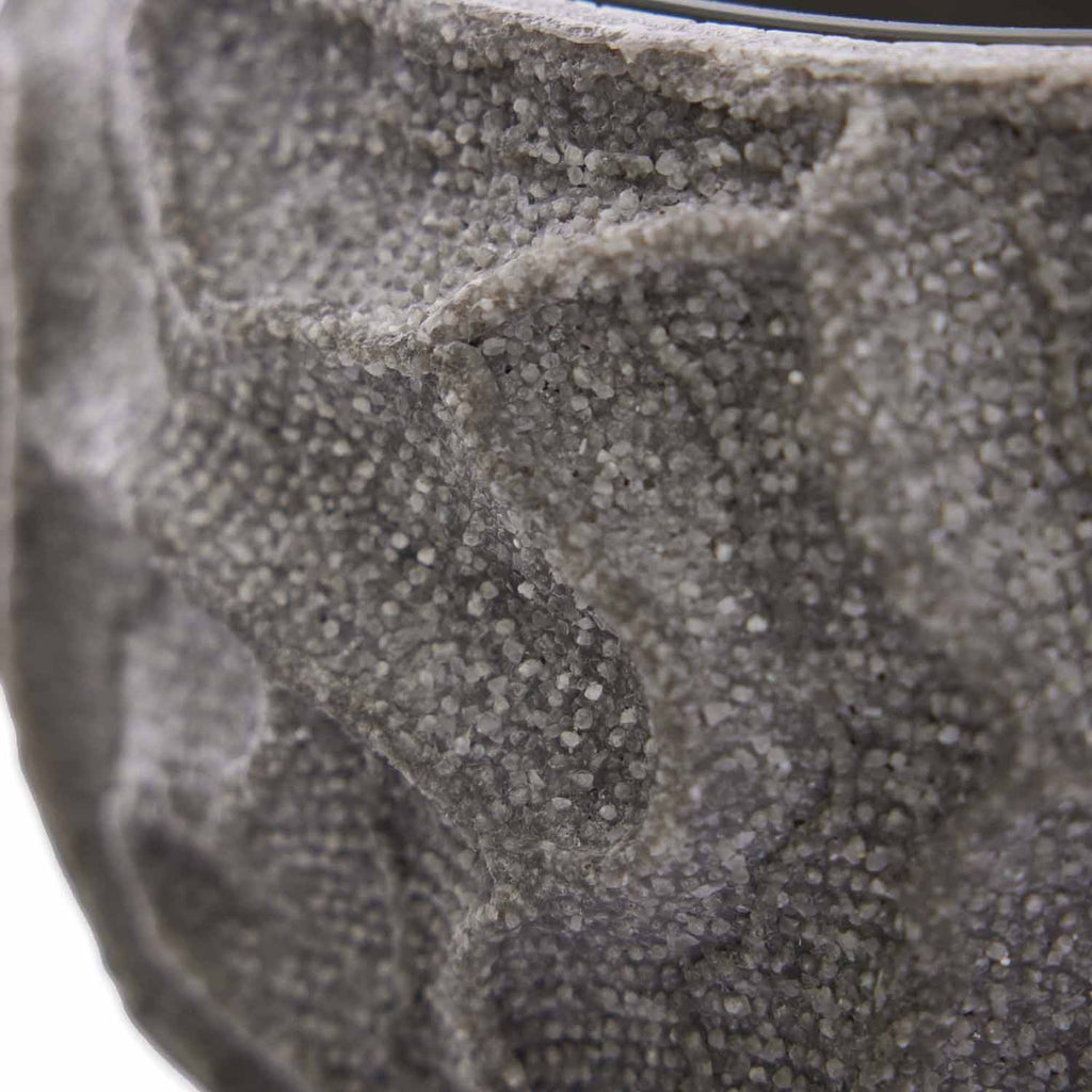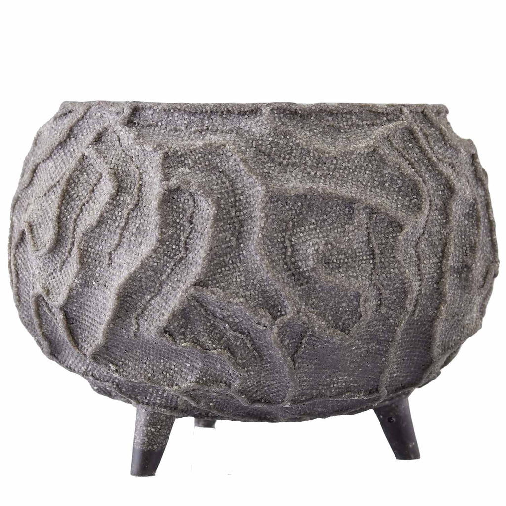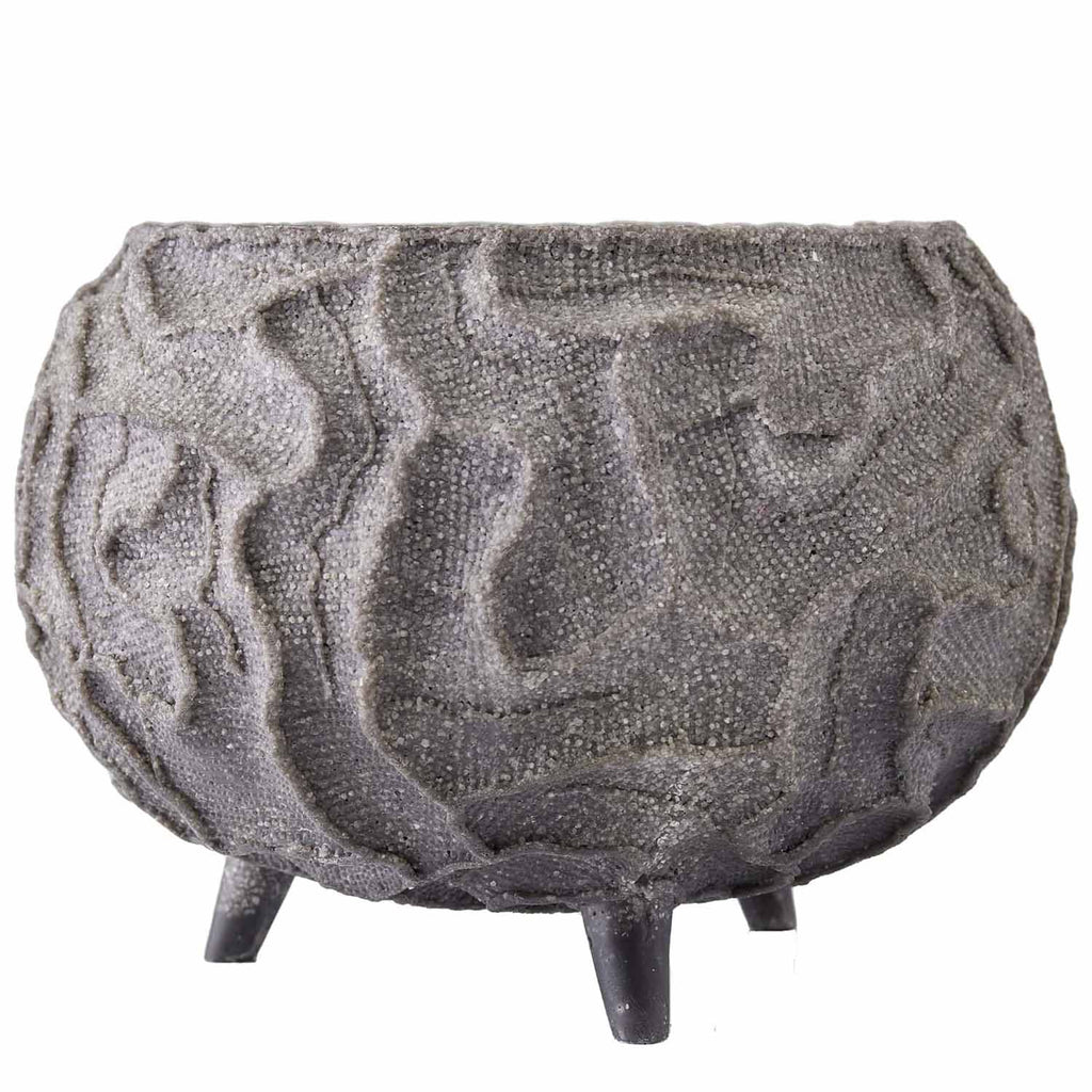 Arteriors Home brings sophistication and style to any interior design project with their collection of decor and tabletop pieces. The footed Arteriors Hyder planter just might be as beautiful as the blooms or houseplant it displays. The vessel is crafted in graphite ricestone composite, with a chiseled texture inspired by coral. The planter is fitted with a clear glass liner, making it watertight. Finish will vary.