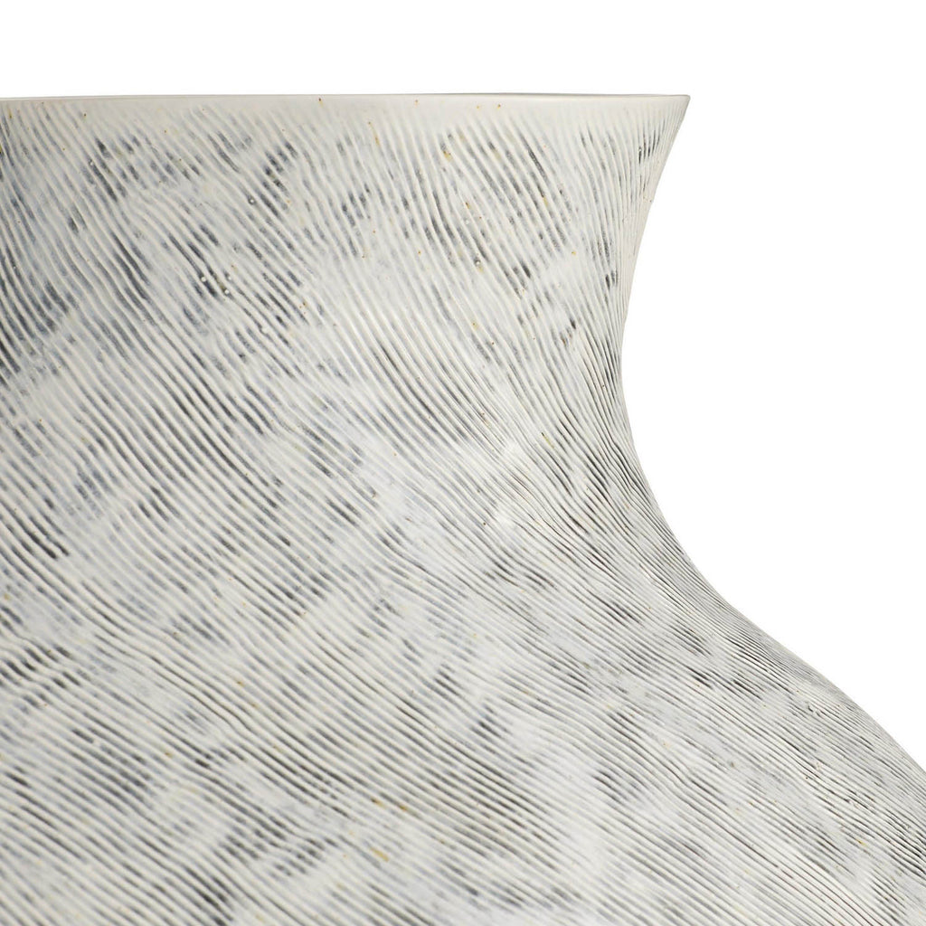 The curves of a tulip bulb elevate our free-form, large-scale vase of the finest porcelain. Finished in ice-reactive glaze, this contemporary artifact has an appealing, hand-thrown texture and is watertight. Finish will vary.