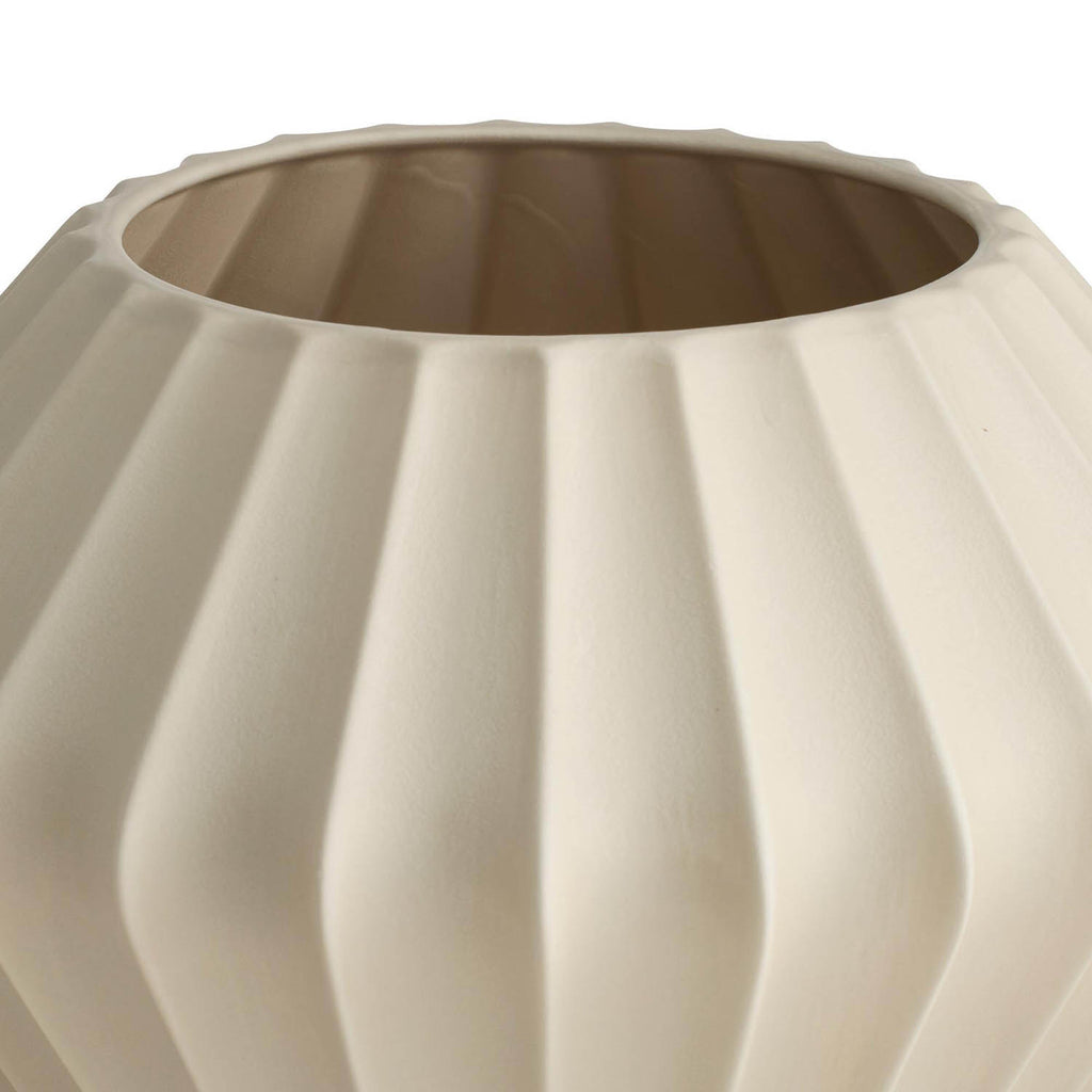 Hand-formed to resemble a floral bulb, this substantial porcelain vase's touchable texture cascades from the rounded lip to the narrowed base. It is finished in a matte taupe glaze and made to be watertight. Finish will vary.