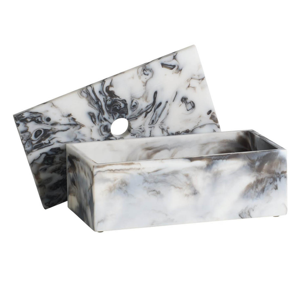 Inspired by classic nesting boxes, this pair of containers delivers a marble-like effect in black-and-white swirled resin, each unique in pattern. A small round opening in each lid allows for easy lifting. Finish will vary.