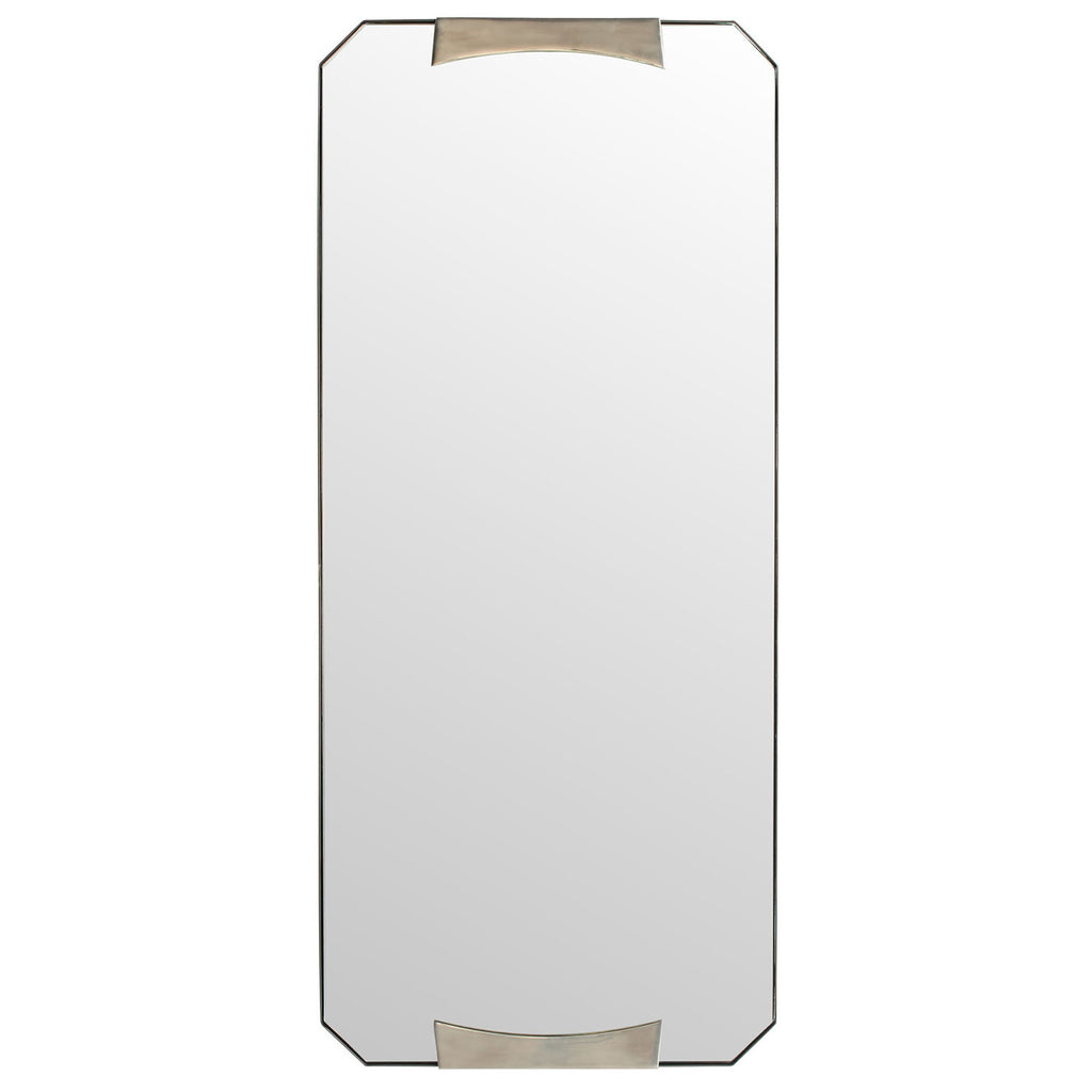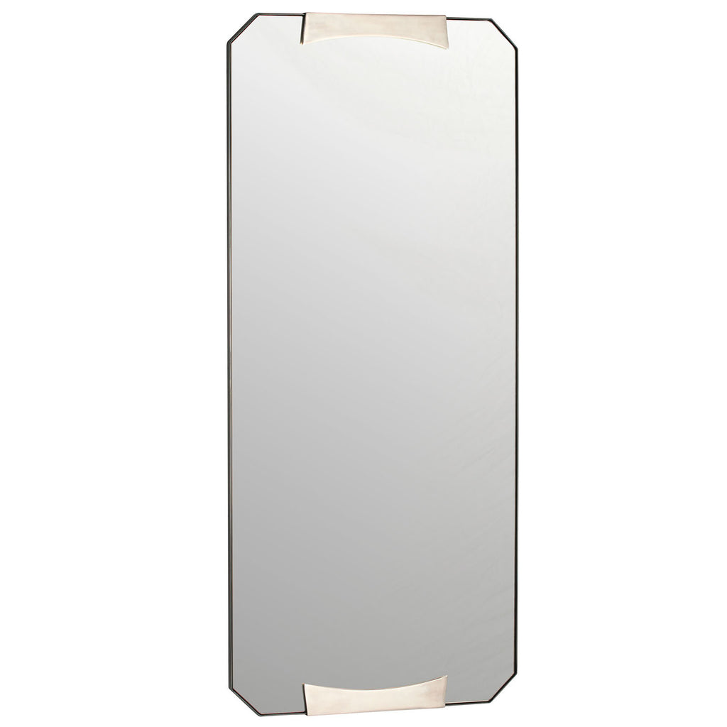 Elegantly modern, the Kris rectangular mirror makes the most of its refined geometric design. Gracefully formed iron clasps plated in vintage silver hold the top and bottom of the slim blackened iron frame. The raised design creates depth and adds chic sophistication. This adaptable accessory can be displayed vertically and horizontally, hung singly in a powder room, or staged in multiples. Designed with a back cleat for secure placement. Hanging hardware included.