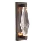 Arteriors Home lighting embodies the perfect balance of form and function, creating an ambiance that is both captivating and inviting. With an emphasis on functionality, versatility, and visual appeal, the Arteriors Home wall sconce fixtures embrace both form and function, elevating any environment with timeless allure. Inspired by natural faceted crystal, brings to life the overtly organic design of the Arteriors Maisie. The angular construction of this sconce is crafted from clear seedy crystal framed by English bronze iron with brackets that mimic the faceted form. The illumination plays with the colors of the finish, offering a slight brass tint of bronze to the crystal when in use. Damp rated, althogh limited covered outdoor areas may affect finish.