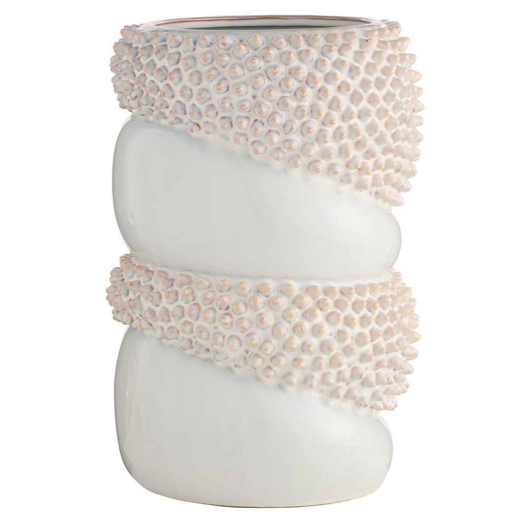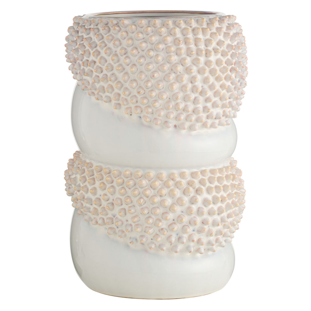 Smooth and spiked textures alternate across this strikingly scaled modern ceramic vase. Finished in a laurel-reactive glaze, its varied surface evokes the organic forms of coral. Watertight and sculptural, it makes a stylish home for an oversized bouquet.