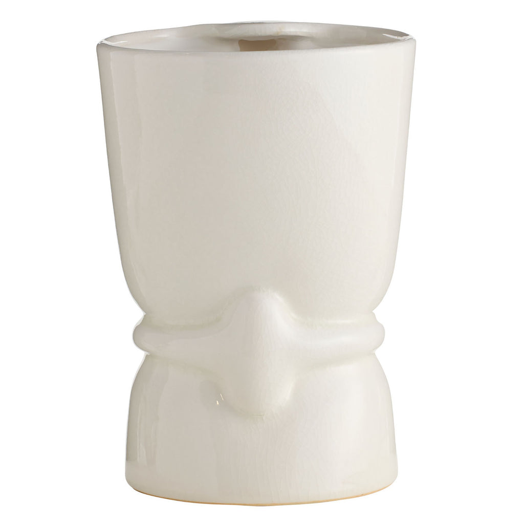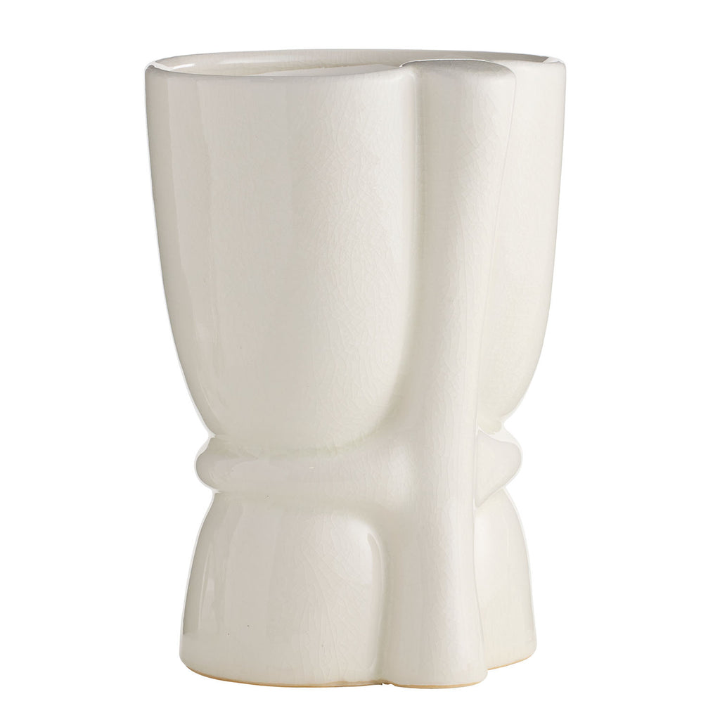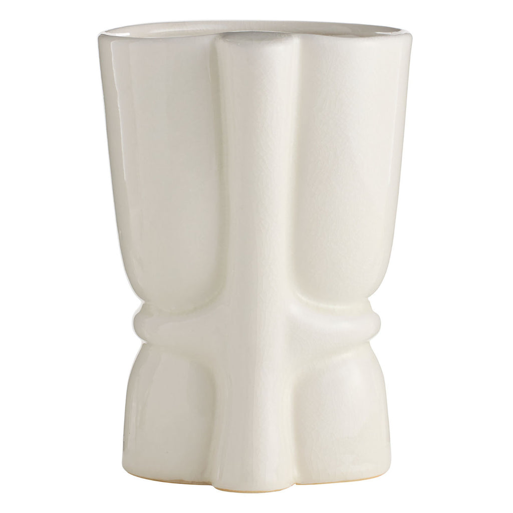 The stylized, flowing forms of Art Nouveau are embodied in this pair of ivory crackle ceramic vases. Each organic silhouette is subtly offset from its companion, creating a harmonious yet contrasting display. Finish will vary.
