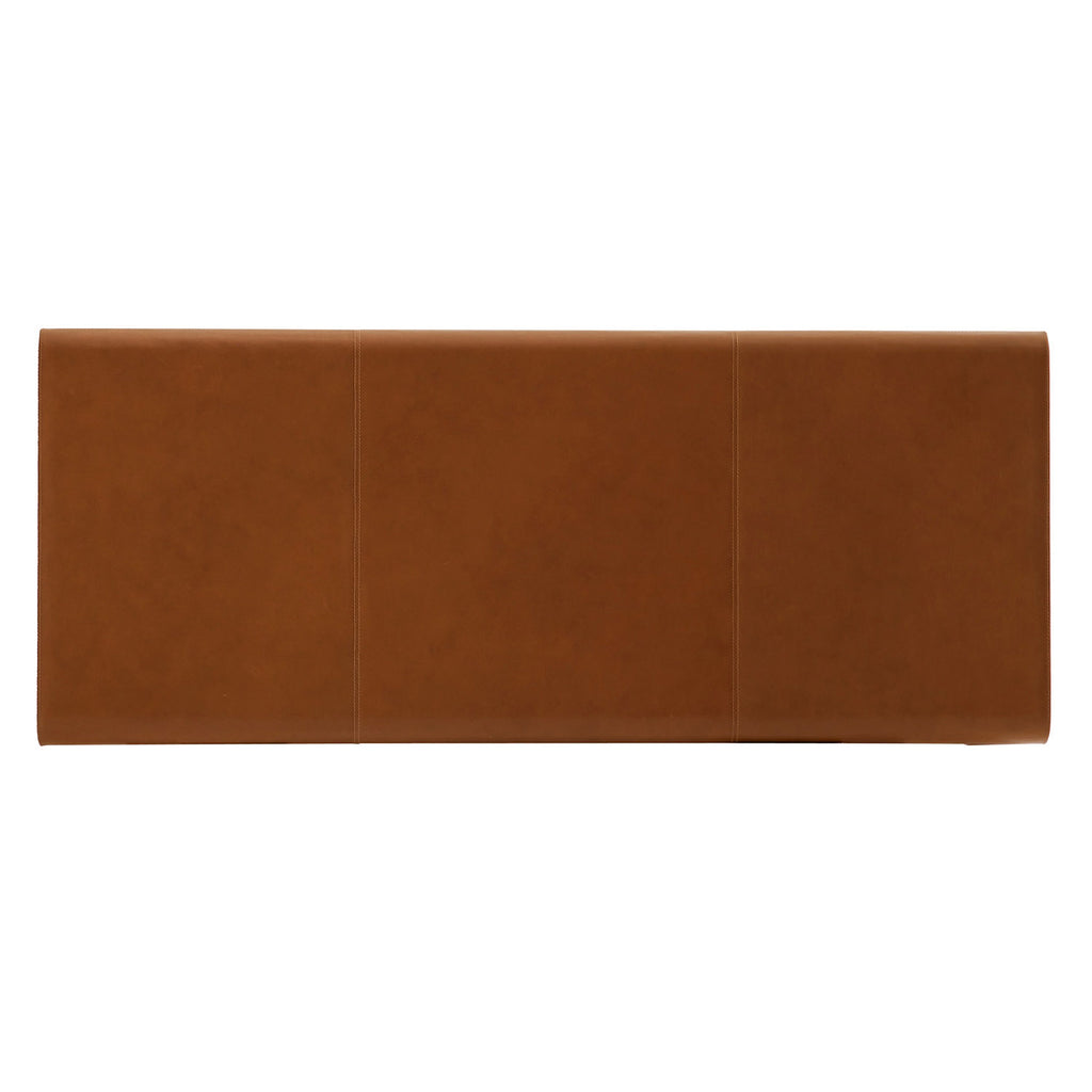 The Meyer desk presents elegant soft curves wrapped in russet leather, concealing two suede-lined drawers. Leather and suede will vary.