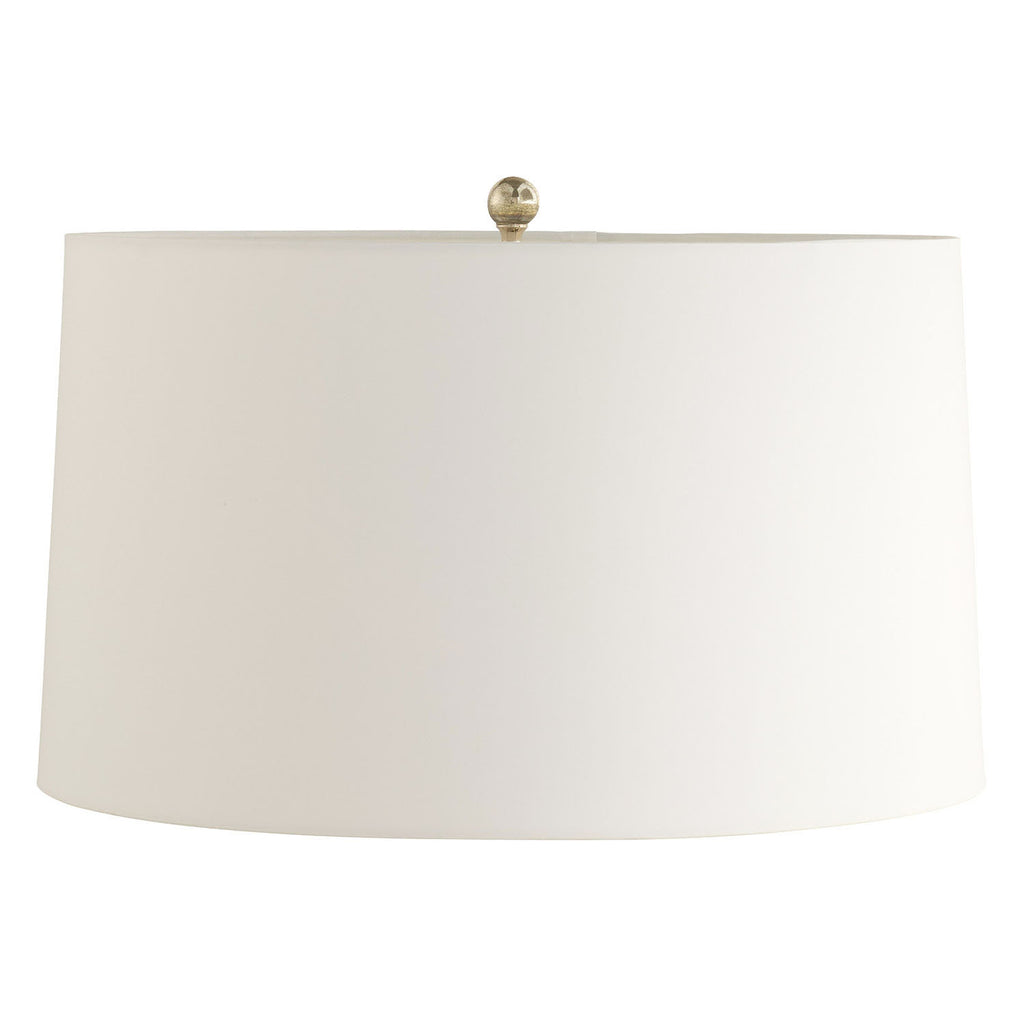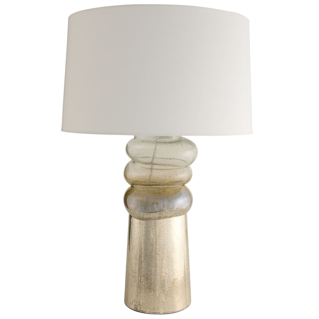 A stack of sculptural lucite bangles inspired the silhouette of our seeded glass table lamp. With an antique mercury ombre finish, the variation in colors and translucency draws the eye to its organic, asymmetric form. A neck of polished nickel-plated iron supports the off-white microfiber drum shade lined in matching cotton. Finish will vary.