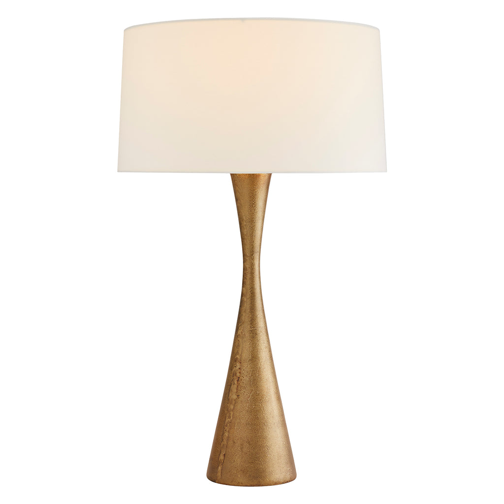 Arteriors Home lighting embodies the perfect balance of form and function, creating an ambiance that is both captivating and inviting. From classic designs to contemporary styles, each Arteriors Home table lamp is carefully crafted with attention to detail and showcases our passion for artistic expression. With absolute angles, the Arteriors Narsi is a simple yet sleek approach to tabletop lighting design. The slender, tapered hourglass shape is cast in aluminum and then finished in antique brass. Topped with an off-white cotton drum shade with off-white cotton lining and an antique brass sphere finial.