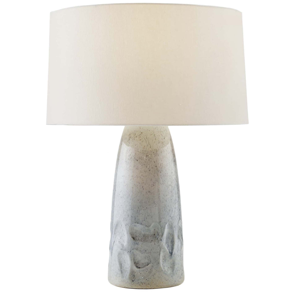 Arteriors Home lighting embodies the perfect balance of form and function, creating an ambiance that is both captivating and inviting. From classic designs to contemporary styles, each Arteriors Home table lamp is carefully crafted with attention to detail and showcases our passion for artistic expression. With seaside vibes, the ceramic Arteriors Pacifica lamp, in an ice reactive glaze, is designed with a jar-style body, detailed in a wave-like texture. The handmade vessel is accented with an antique brass sphere finial and a white linen drum shade lined in white cotton. Finish will vary.
