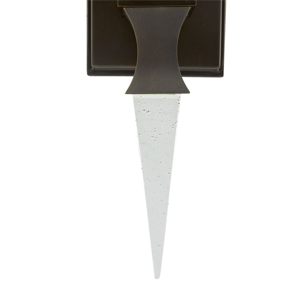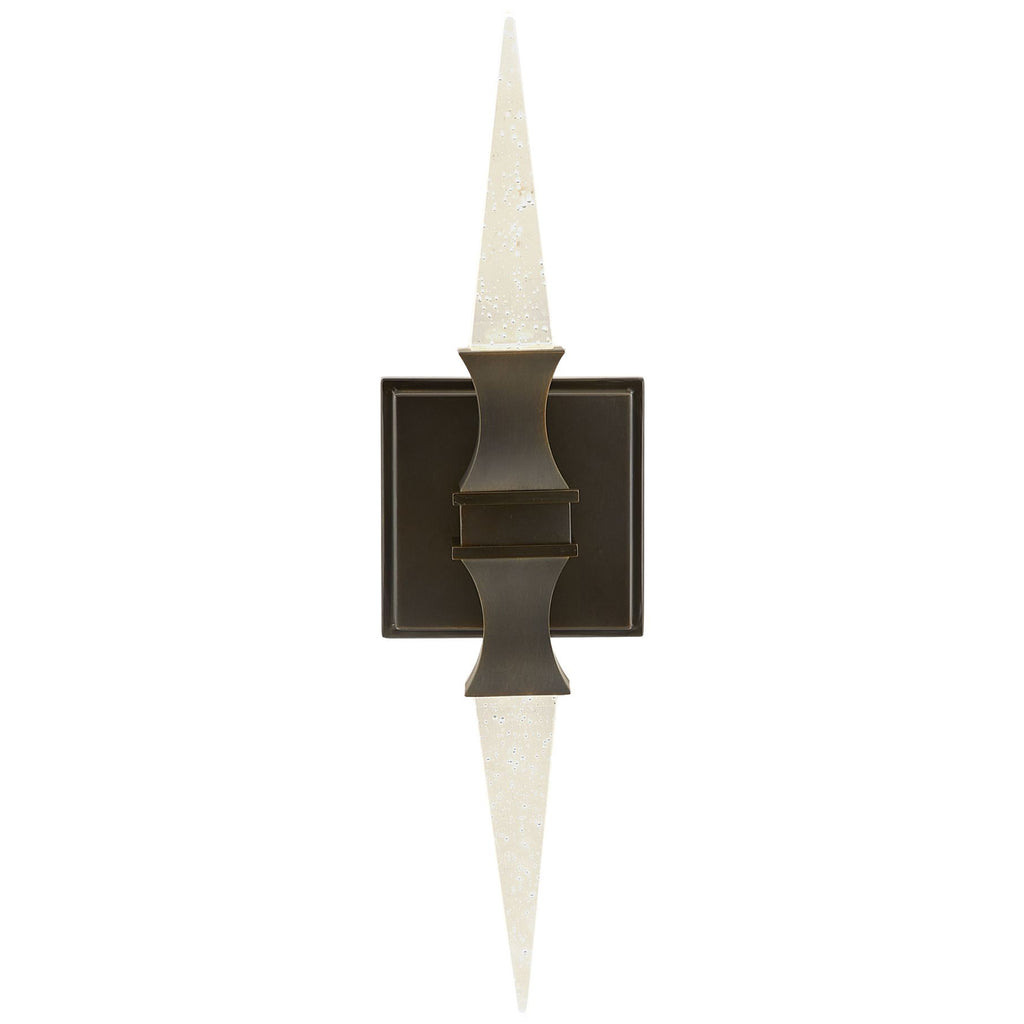 Arteriors Home lighting embodies the perfect balance of form and function, creating an ambiance that is both captivating and inviting. With an emphasis on functionality, versatility, and visual appeal, the Arteriors Home wall sconce fixtures embrace both form and function, elevating any environment with timeless allure. Inspired by vintage quartz crystal obelisks, the elegant Arteriors Piper sconce emits an ambient glow above and below. The classic, dual torchiere-style sconce is fashioned in clear seedy crystal with a decorative center arm and a backplate in english bronze steel. Led integrated. Finish will vary.