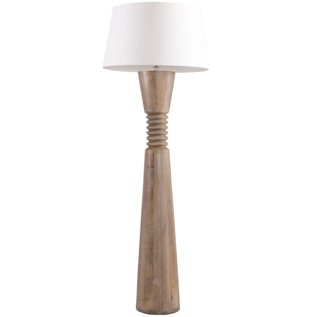 Arteriors Home lighting embodies the perfect balance of form and function, creating an ambiance that is both captivating and inviting. Arteriors Home floor lamps not only provide functional lighting but also serve as stunning statement pieces. Their unique designs and materials can create a focal point in any room, elevating the overall aesthetic. The turned-wood Arteriors Sedona lamp exemplifies minimalism on maximalist scale. The cerused oak floor lamp is designed with a cinched, carved waist to create textural contrast. A polished nickel finial accessorizes the piece. The lamp is topped with an off-white, tapered linen shade lined in off-white cotton. Finish will vary.
