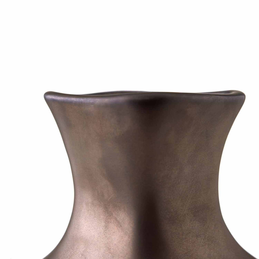 The Arteriors Tilbury dares to be bold. The vase is rendered in an expressive decolletage form in the ceramic. Use the watertight accent to hold a favorite bloom, or as an evocative tabletop accessory.