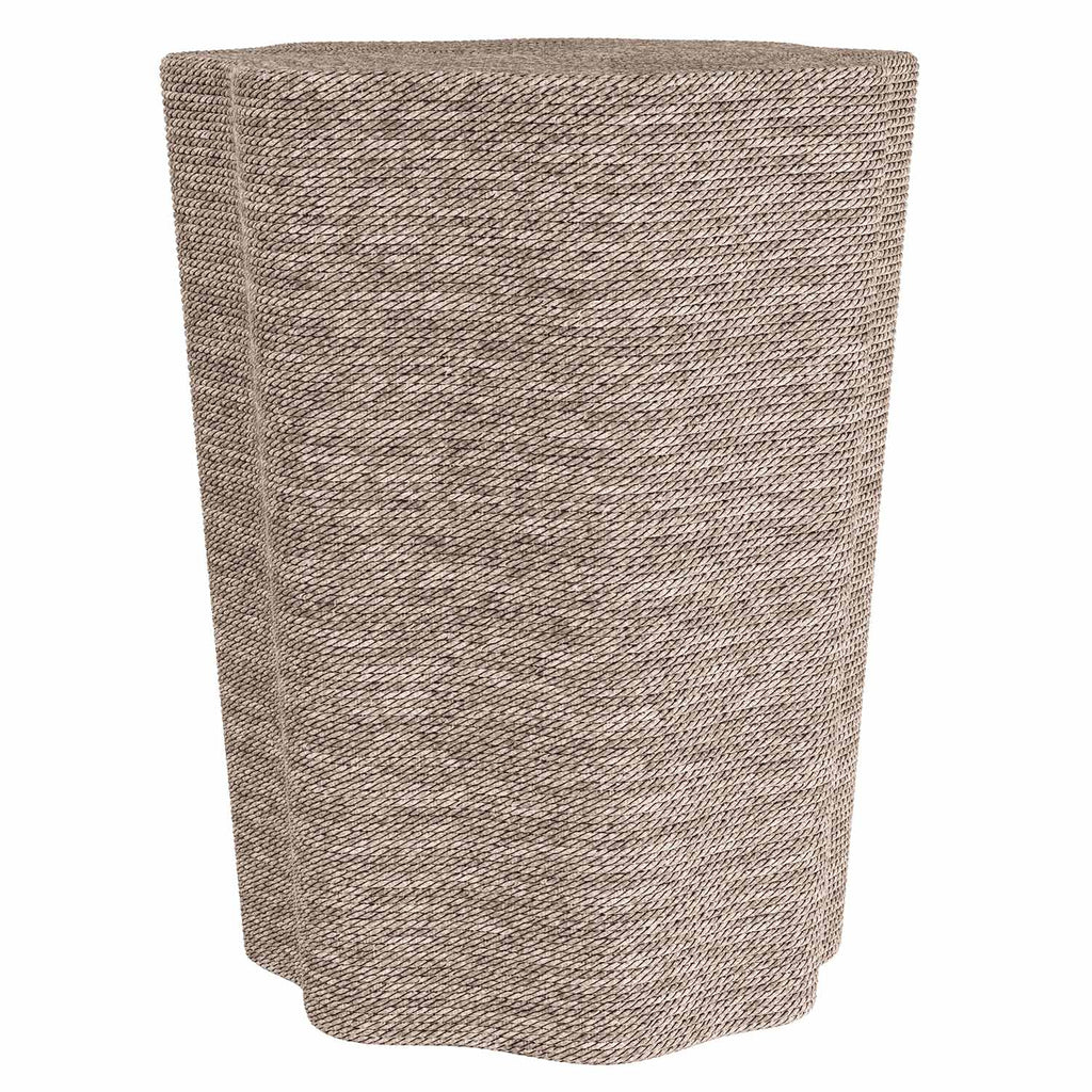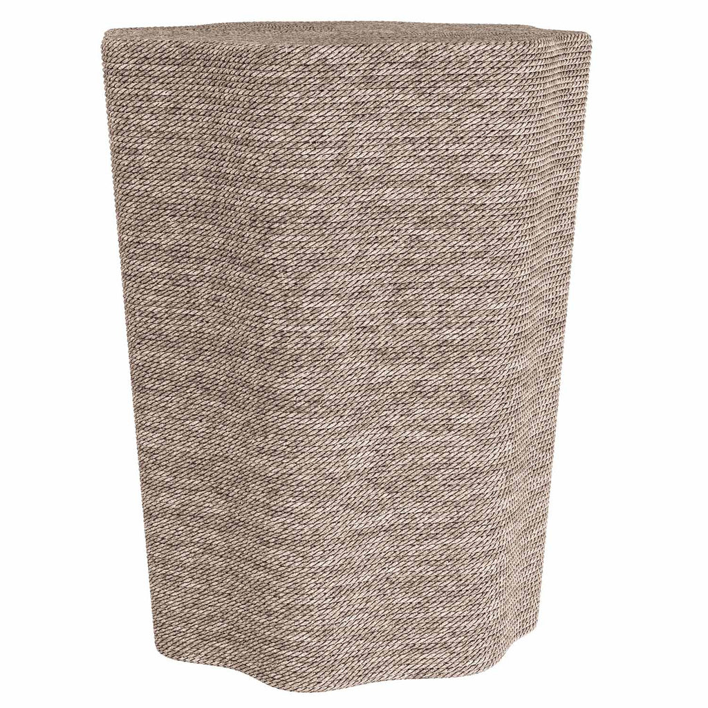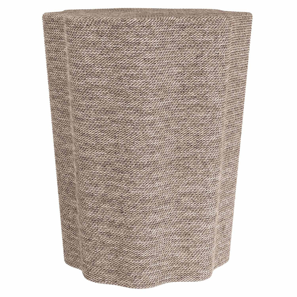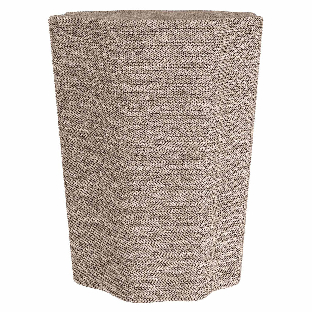 Our Arteriors Tuscon table bestows a layer of artisanal texture to a space. The natural beauty of bleached natural abaca is on full display, used to wrap the amorphous accent piece. The organic table can also be used as a stool. Finish will vary.