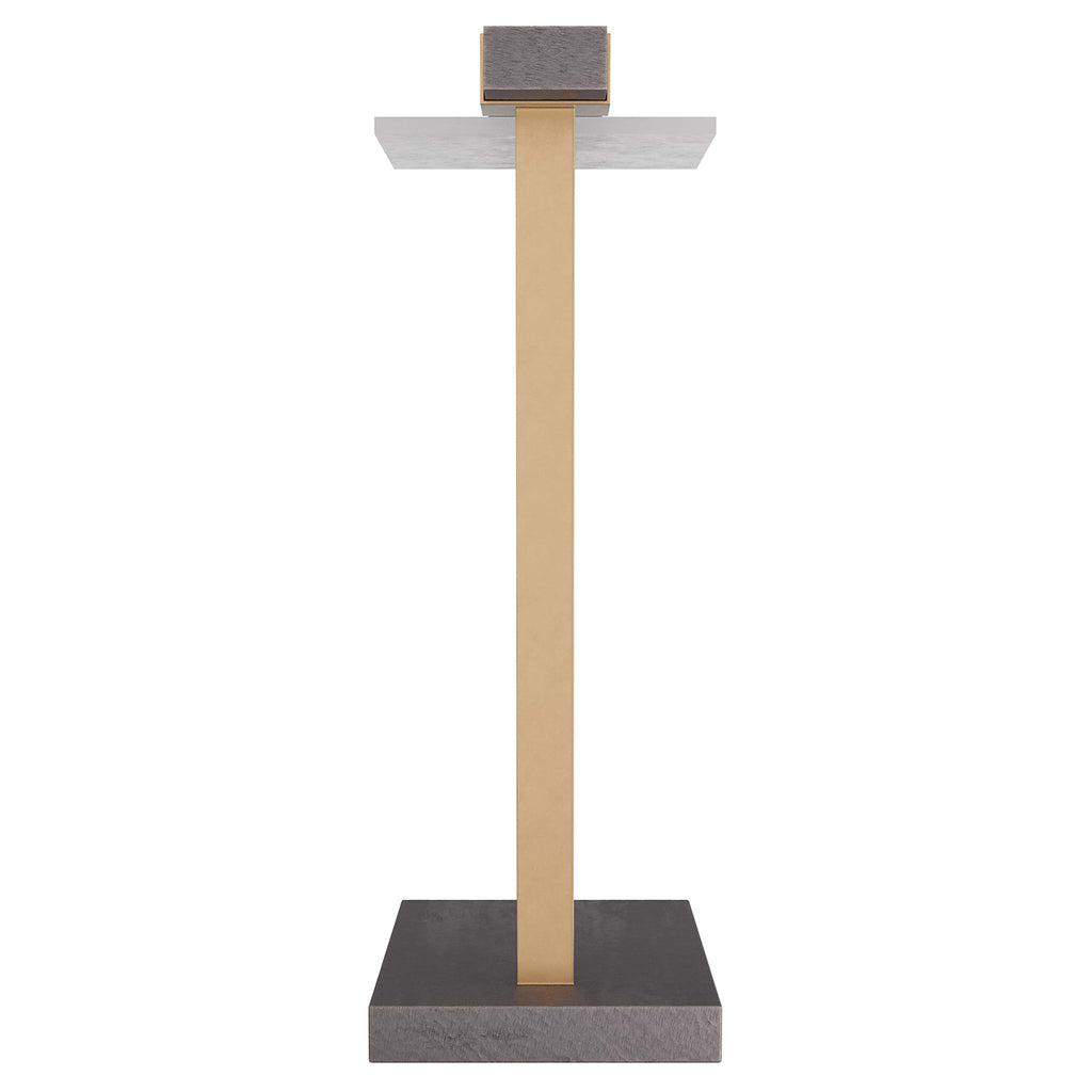Arteriors Home lighting embodies the perfect balance of form and function, creating an ambiance that is both captivating and inviting. Crafted with meticulous craftsmanship, Arteriors Home desk lamps seamlessly merge modernity and timeless appeal, enhancing both the ambiance and functionality of any workspace. The Arteriors Twain table lamp is an example of masterful material mixing and exquisite detailing. This sleek, modern led desk lamp is created in a l-shape silhouette, with a chattered antique brass stem and contrasting english bronze as the finish on the base. A plate of white alabaster forms a diffuser, casting soft surface illumination. The knurled, antique brass dimmer knob rests atop the base, adding embellishment and grip. Finish will vary.