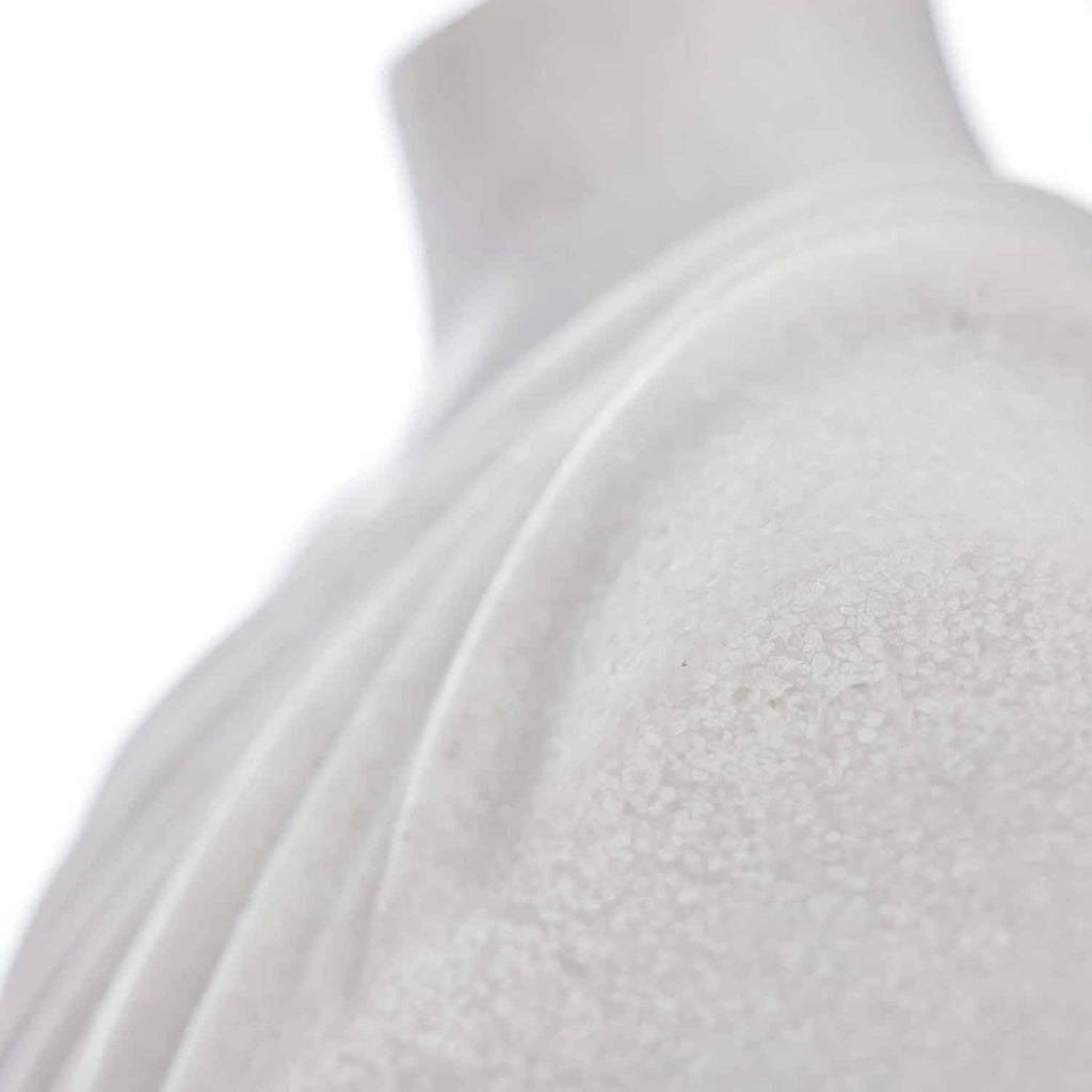 A nod to the classical roman bust form, the Arteriors Virtue sculpture is created in ivory ricestone composite and features a skillfully molded swath of fabric that mimics a toga. Antiquity reimagined, this art object elevates modern and traditional interiors alike. Finish will vary.