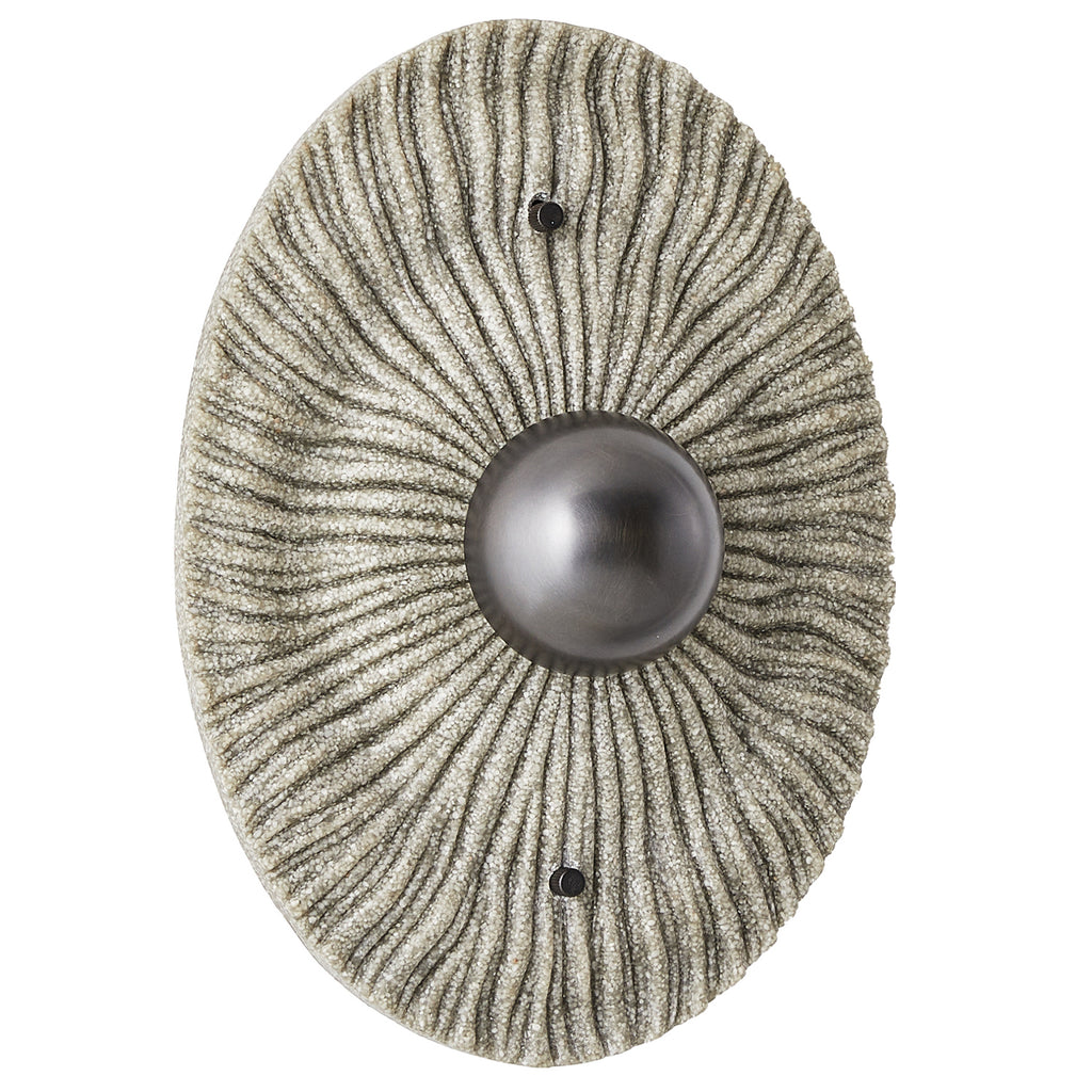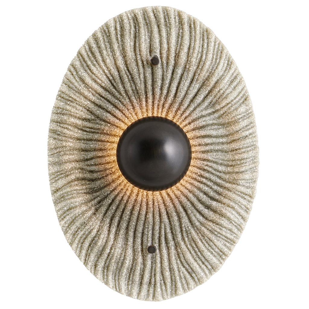 The natural beauty and complexity of a coral reef inform our Arteriors Yesenia sconce. Crafted of charcoal ricestone composite and english bronze steel, the integrated led ambient light creates a complex yet soothing pattern. The integrated led is enlosed by a white acrylic diffuser. Damp-rated, although limited covered outdoor conditions may affect finish. Finish will vary.