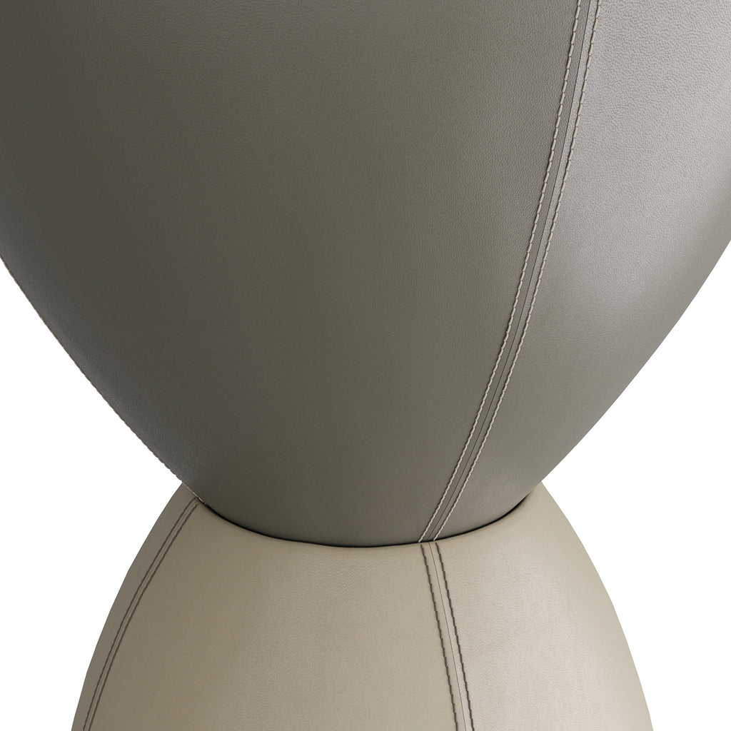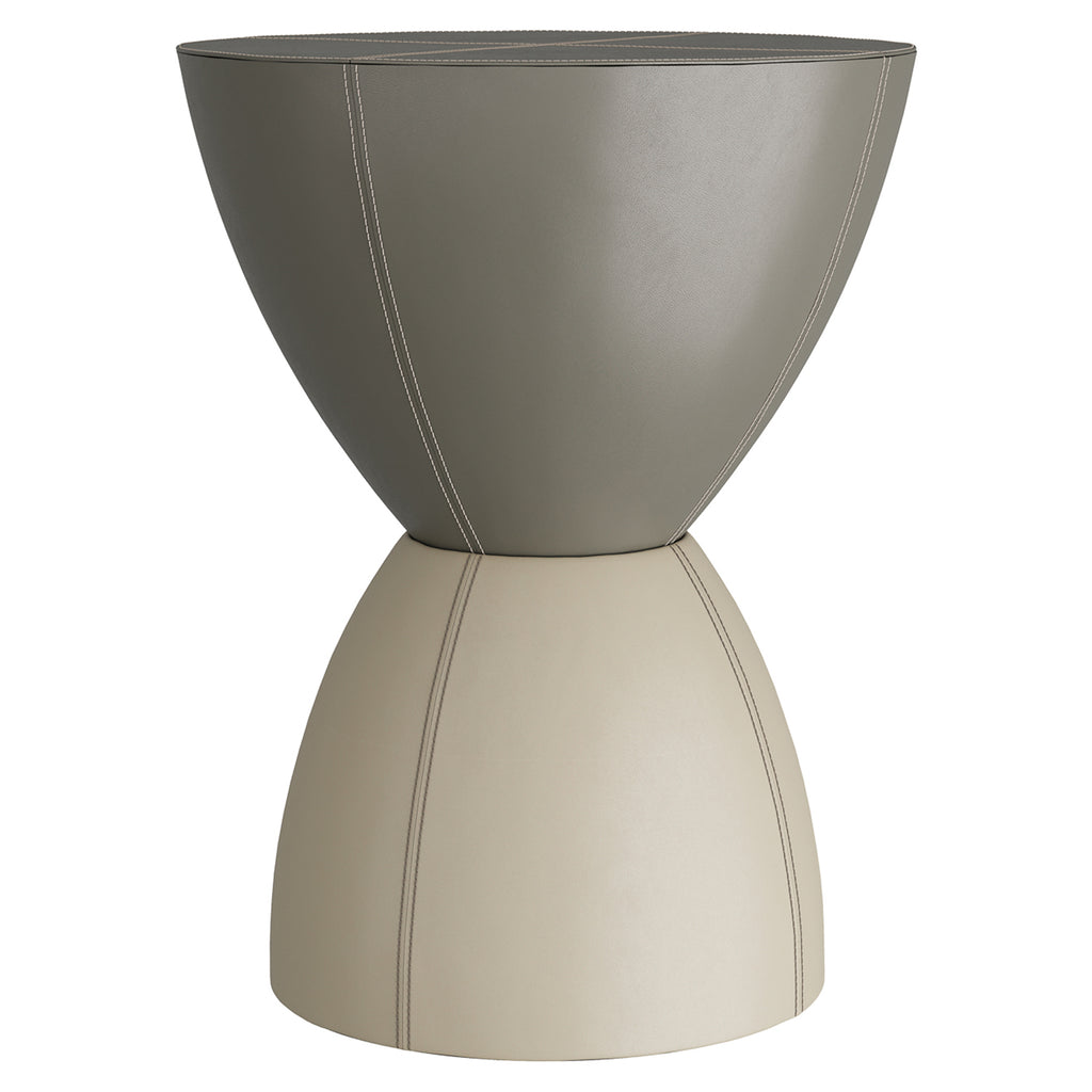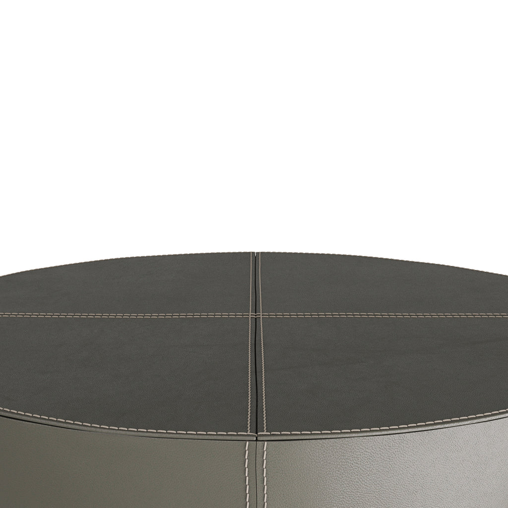 A stacked table makes the most of shades both sculptural and textural. Wrapped in graphite leather atop a stone leather base, it is finished with precise topstitching for visual interest. This modern form is even better when paired. Leather will vary.