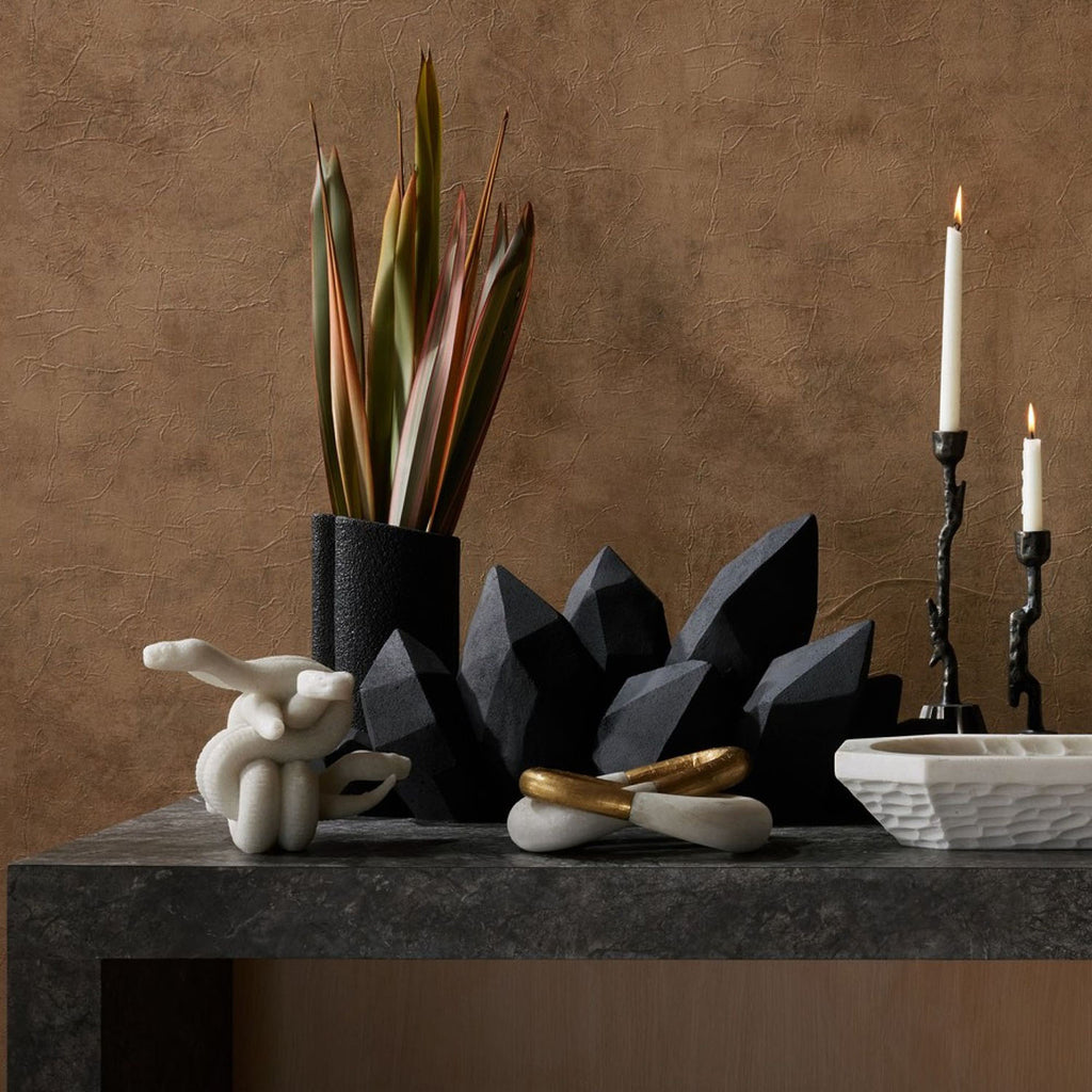 Crafted from ivory ricestone composite, a serpentine sculpture adds a poetic expression to any surface. Adorned with textural scales, this eye-catching accessory recalls the legends of greek mythology in a versatile scale. Finish will vary.