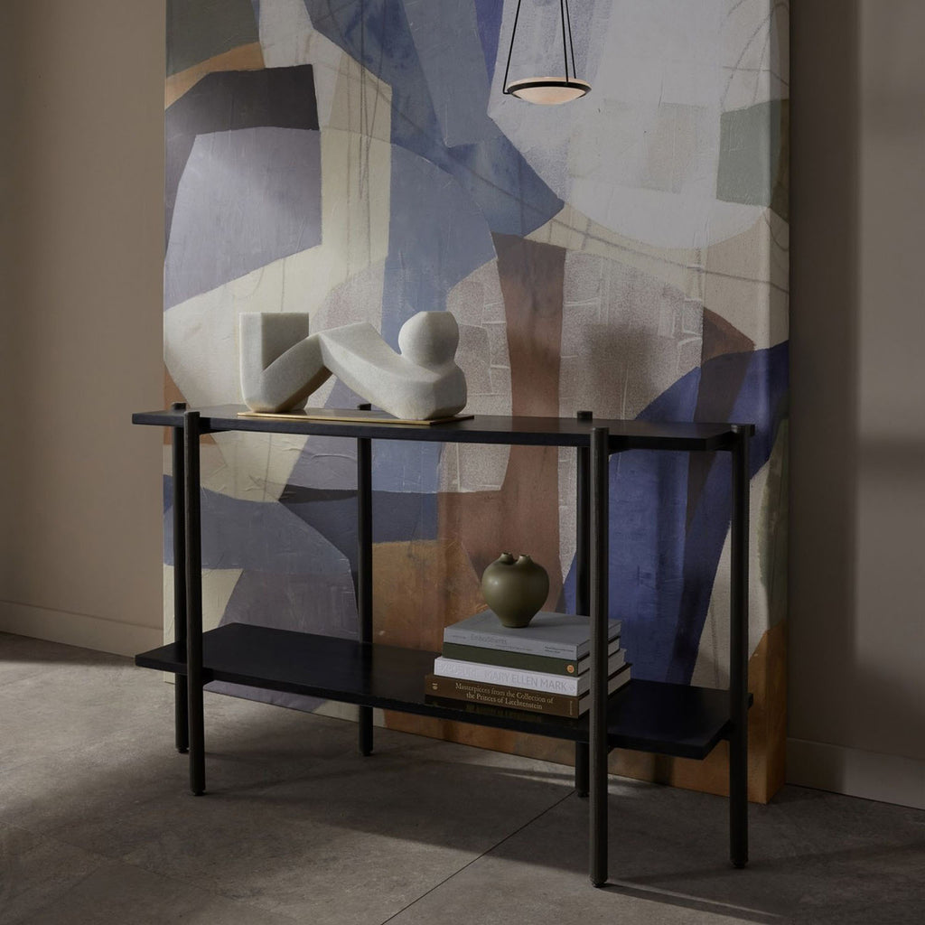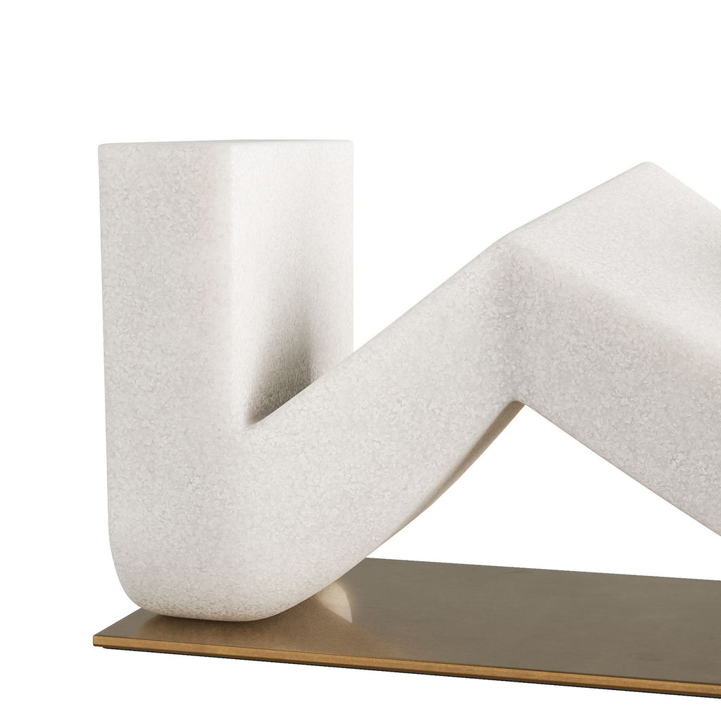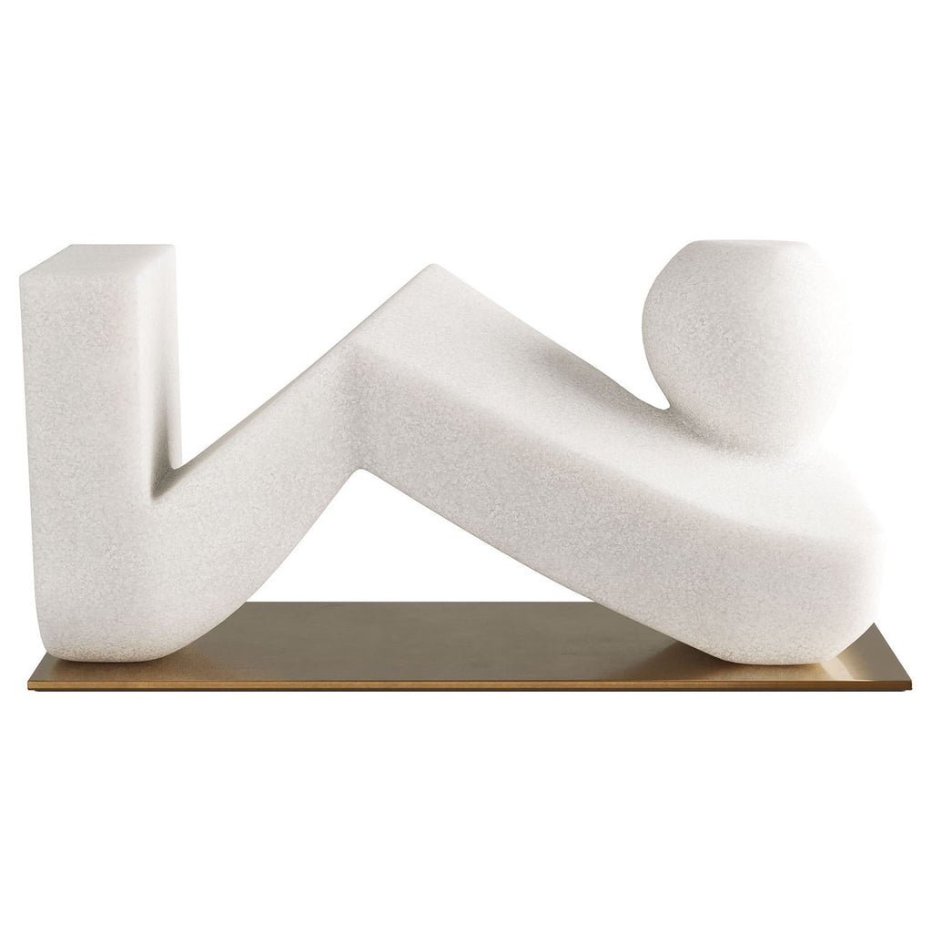 The flowing lines of a reclining figure are embodied in an abstract form of ivory ricestone composite. Reminiscent of modernist sculptures, it is mounted on a slim steel base finished in antique brass. Finish will vary.