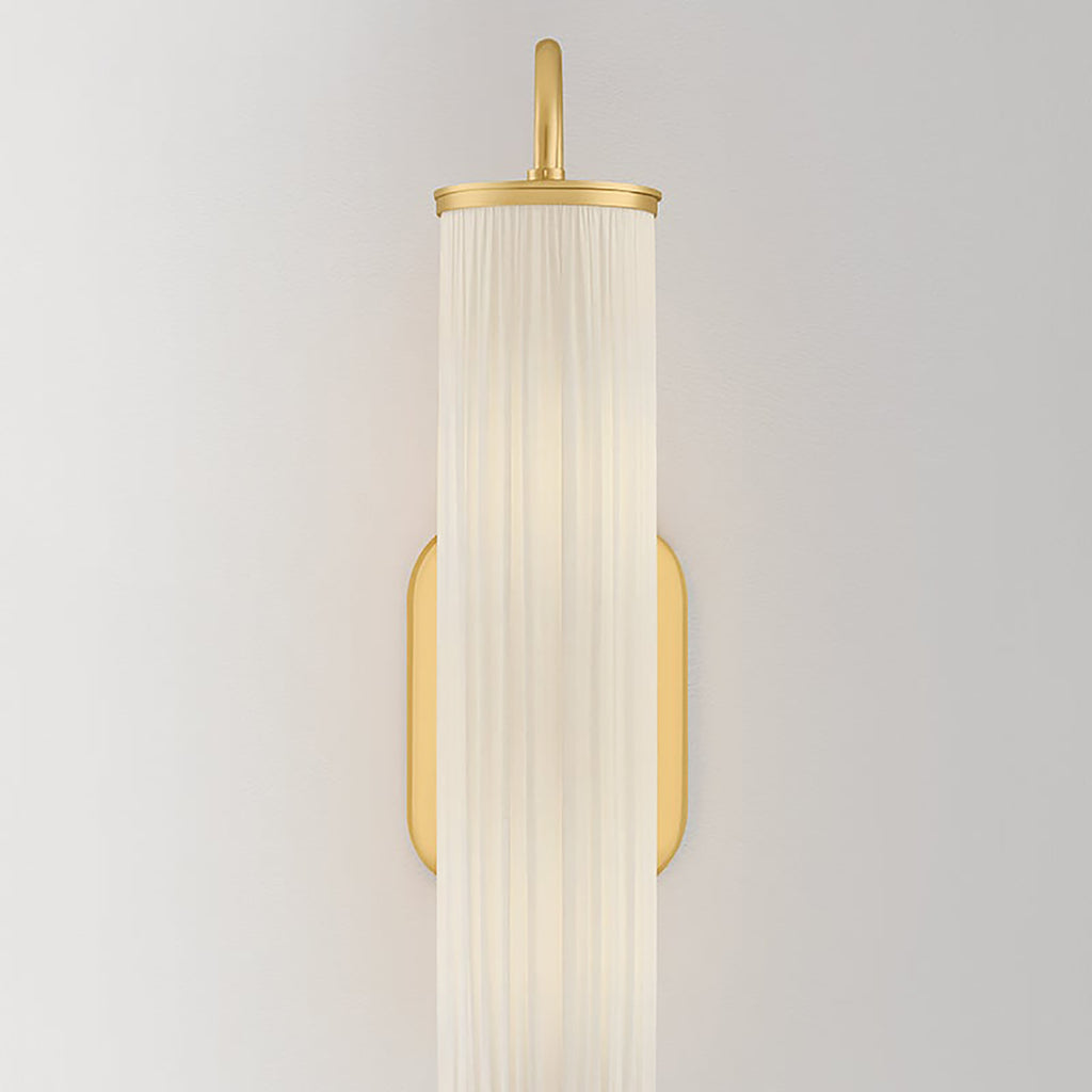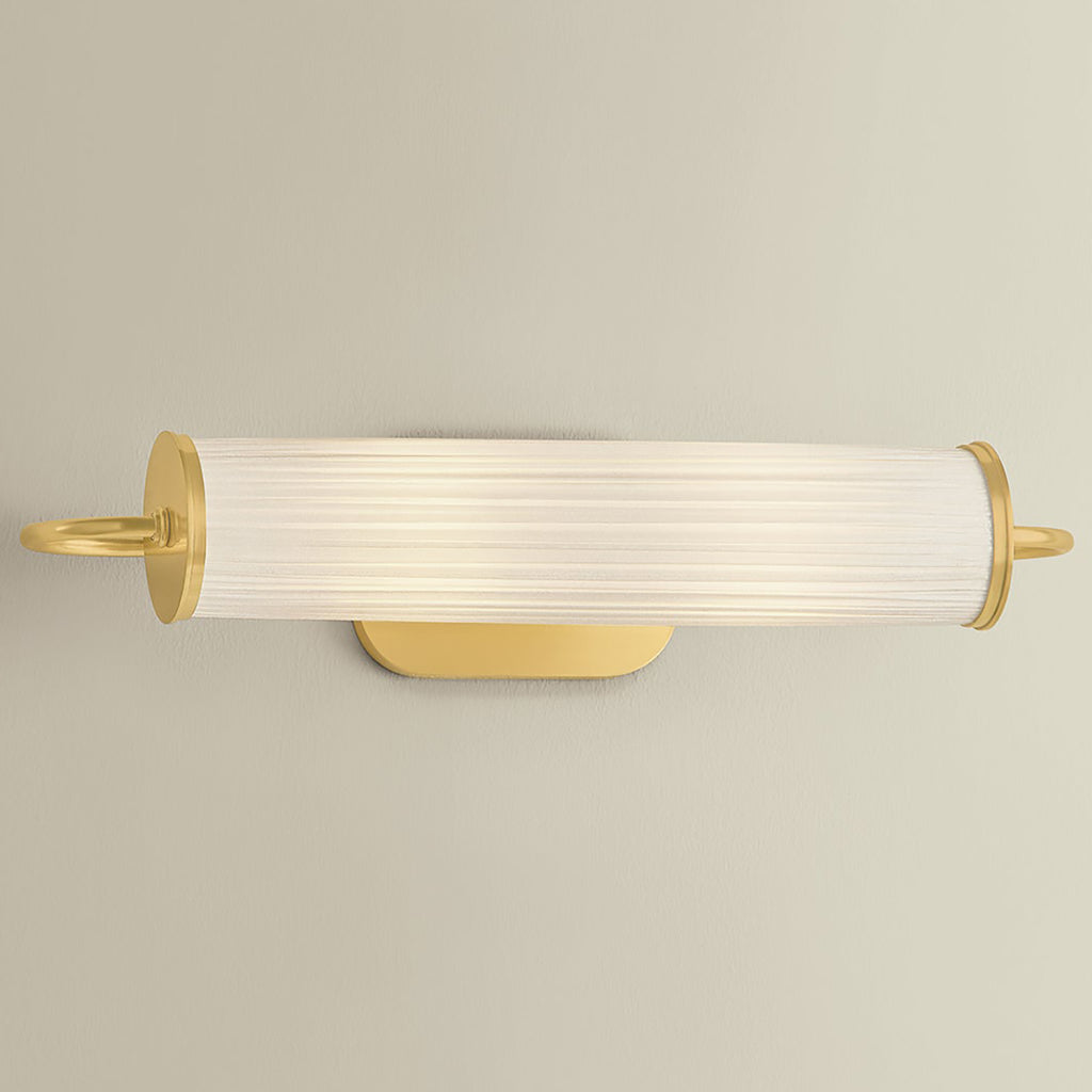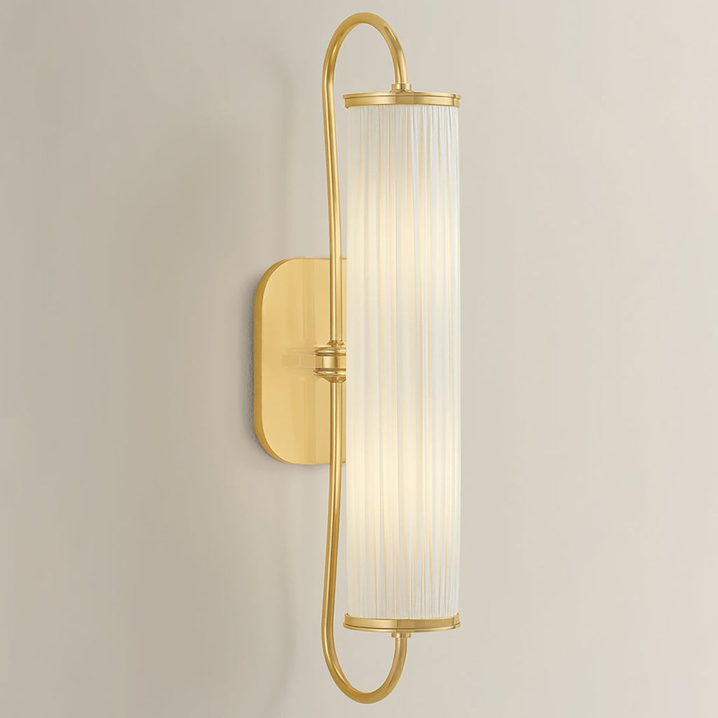 Hudson Valley Lighting Elaine is a petite, elegant fixture that brings quiet sophistication to any setting. A gathered silk shade with even pleating diffuses light beautifully, while gently swooping Aged Brass metalwork introduces softness and sculptural fluidity. Whether used as a decorative accent or subtle task lighting, Elaine enhances moments of transition between spaces, offering a refined sense of continuity. Available as a 2-light vertical sconce or a 2-light picture light, this versatile form brings layered nuance to interiors.