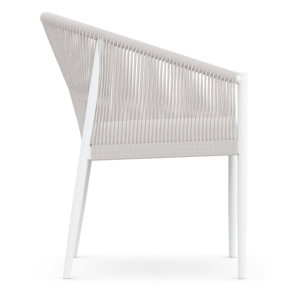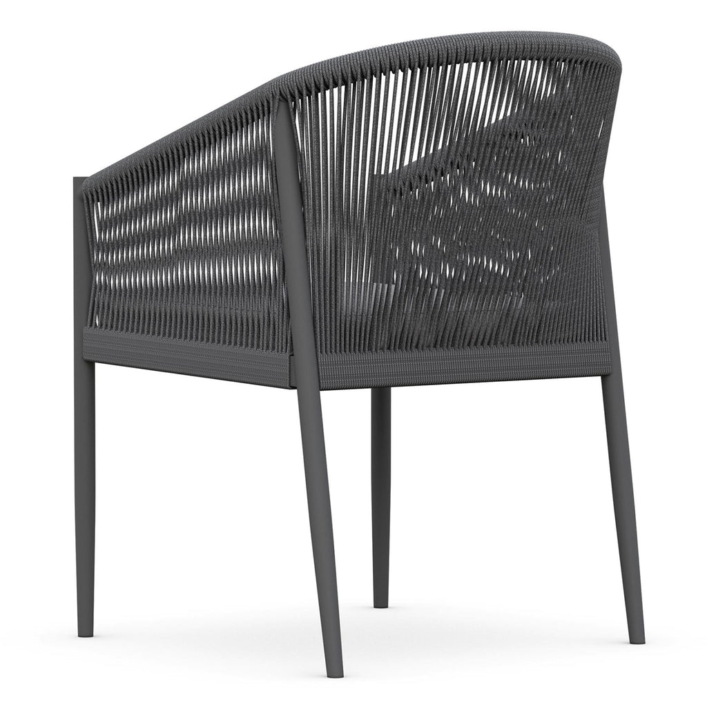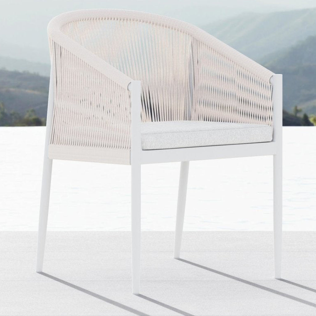 The Catalina Dining Chair by Azzurro Living is a stylish and comfortable addition to any outdoor space. Its fully welded and powdercoated aluminum frame, combined with performance rope, make it a durable and long-lasting choice. The handwoven all-weather rope and tapered legs give the chair a bold and striking appearance. The high density cushions are covered in a chenille performance fabric that can withstand harsh weather conditions.