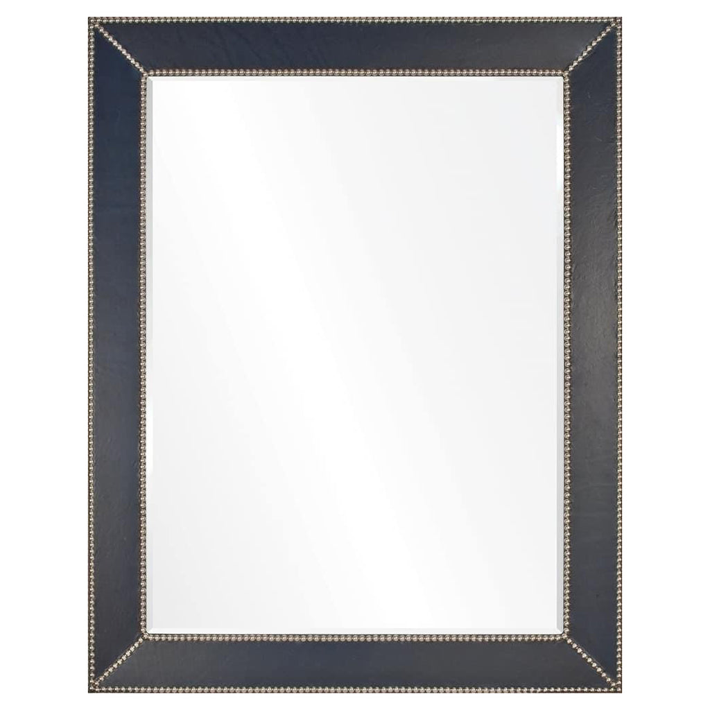 Barclay Butera for Mirror Home brings gorgeous style to living rooms, dining rooms and hallways with mirrors that showcase timeless style. Simple, clean lines give this accent versatile style in any space. Designed by Barclay Butera. Blue leather mirror with silver nailheads. Beveled center mirror. Cleat hardware provided. Item can hang horizontally or vertically.