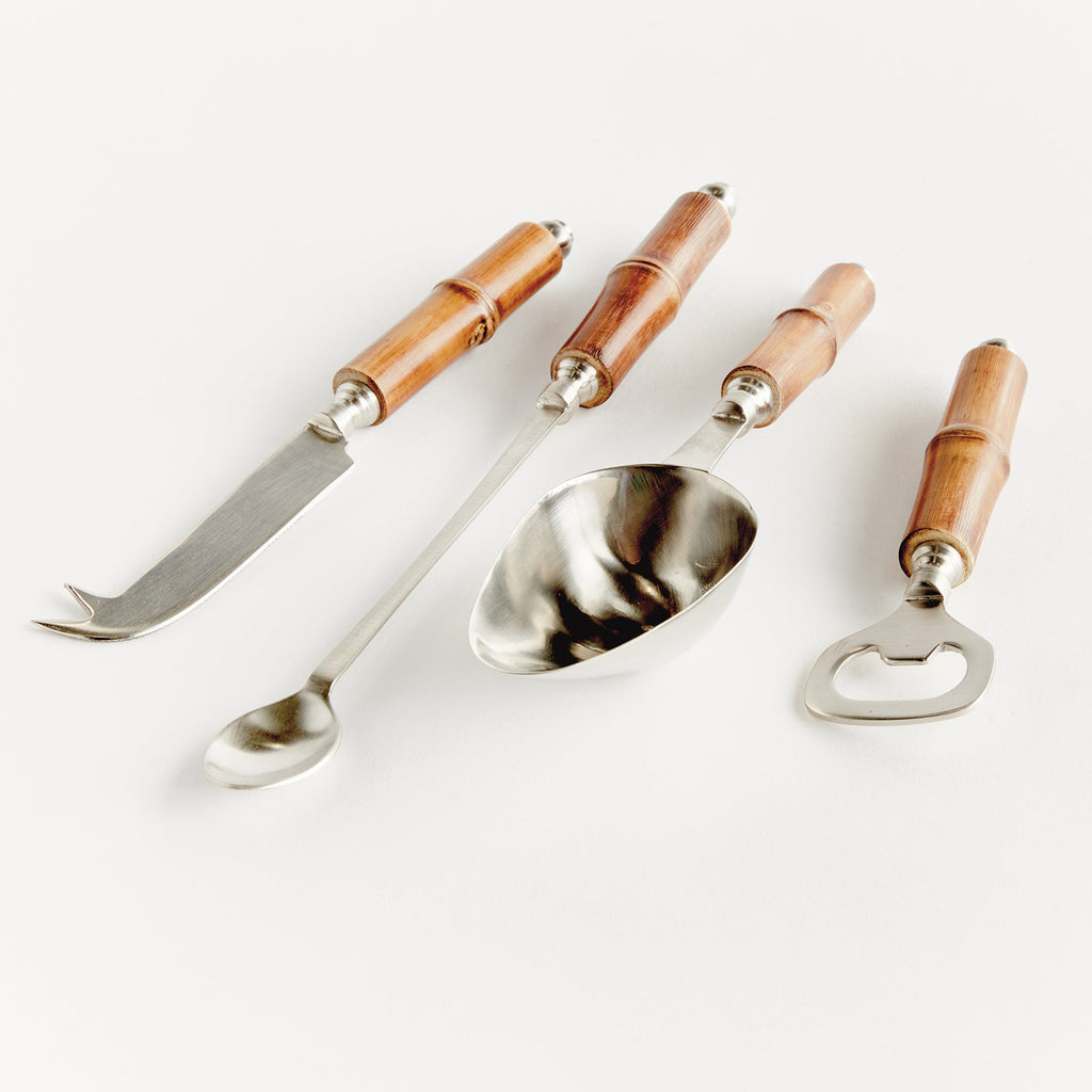 Fitted with real bamboo handles with a rich brown finish, these Keystone Cocktail Accessories are sure to elevate your hostess game. The handsome set comes in a retail display box, making them a perfect hostess gift all year long. Another stunning entertaining set from the highly successful collaboration with designer and lifestyle icon, Barclay Butera.