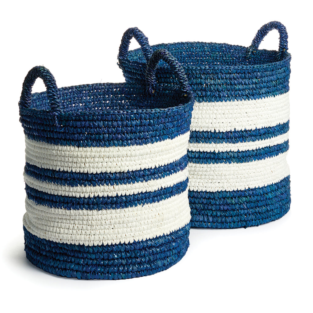 In the Barclay Butera signature blue and white, these relaxed striped baskets are a fresh accessory. Perfect for the laundry room, or to hold towels or linens.