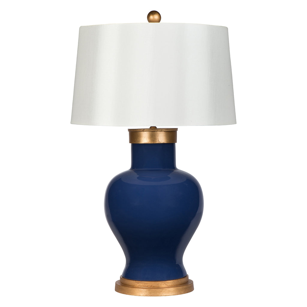 This chic ceramic three-way table lamp offers the best in alluring style with a bold color to spice up a transitional space. Indulge in a fresh design from Barclay Butera, with his trademark palette of blue with a white drum shade. Antique gold accents affirm a romantic aged look and enhance the sleek shapely body of this table lamp, an ideal choice for a main living space or master bedroom.
