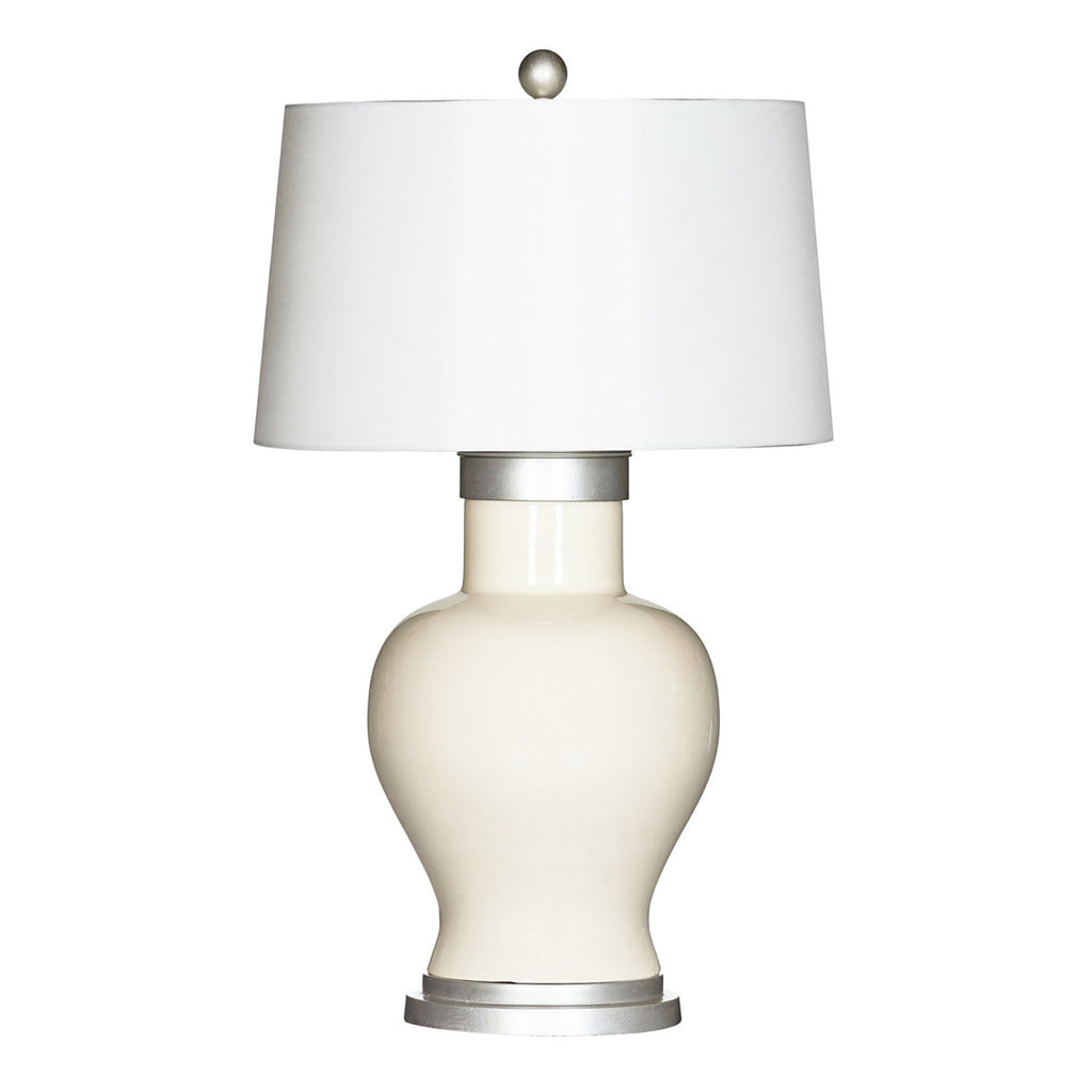 Inspire versatility in palette and design as you outfit a master bedroom or main living area. This charming three-way ceramic table lamp reflects a romantic jar silhouette designed by Barclay Butera, creating a fresh ambiance with a pale finish and antique metal accents. A linen drum shade adds the perfect finish to a sophisticated lamp that ties together details in a transitional space.