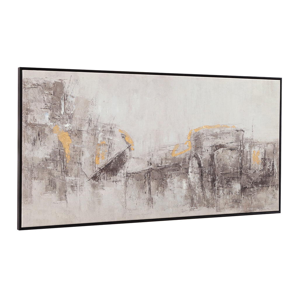 The About Town Framed Canvas features a modern neutral abstract design with subtle pops of gold, adding a touch of luxury to any space. The neutral tones provide a versatile backdrop, while the gold accents offer a striking contrast that brings the piece to life. Framed in sleek black, this canvas art adds a refined and contemporary touch to your decor. Its balanced design and sophisticated details make the About Town Framed Canvas an ideal choice for enhancing the style of any room.