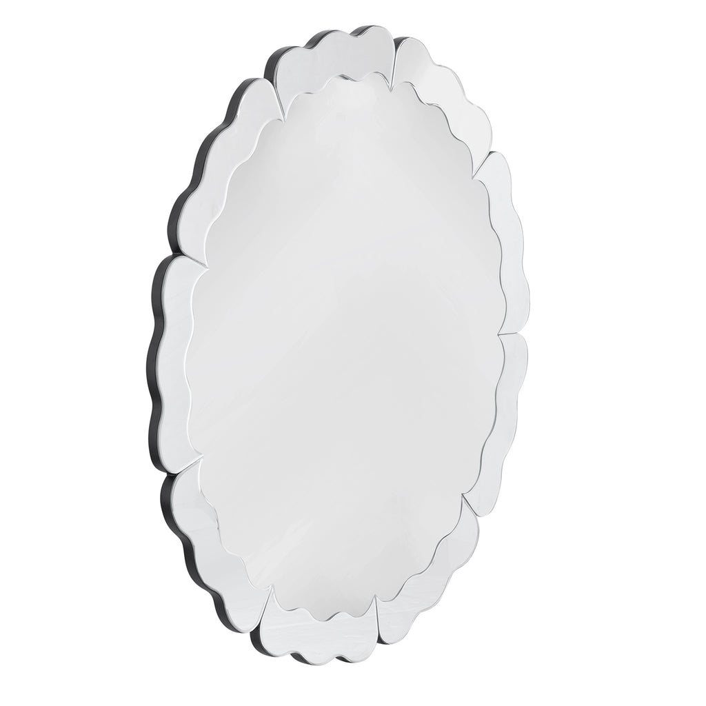 The Alissar Wall Mirror features a mirrored, waved frame that mimics the soft curves of flower petals, creating a delicate and modern look. The unique design adds a touch of elegance to any room, with its reflective surface enhancing the light and atmosphere of your space. This mirror seamlessly blends contemporary style with timeless beauty, making it a versatile piece that complements various interior designs. The Alissar Wall Mirror is perfect for adding a subtle yet striking statement to your home decor.