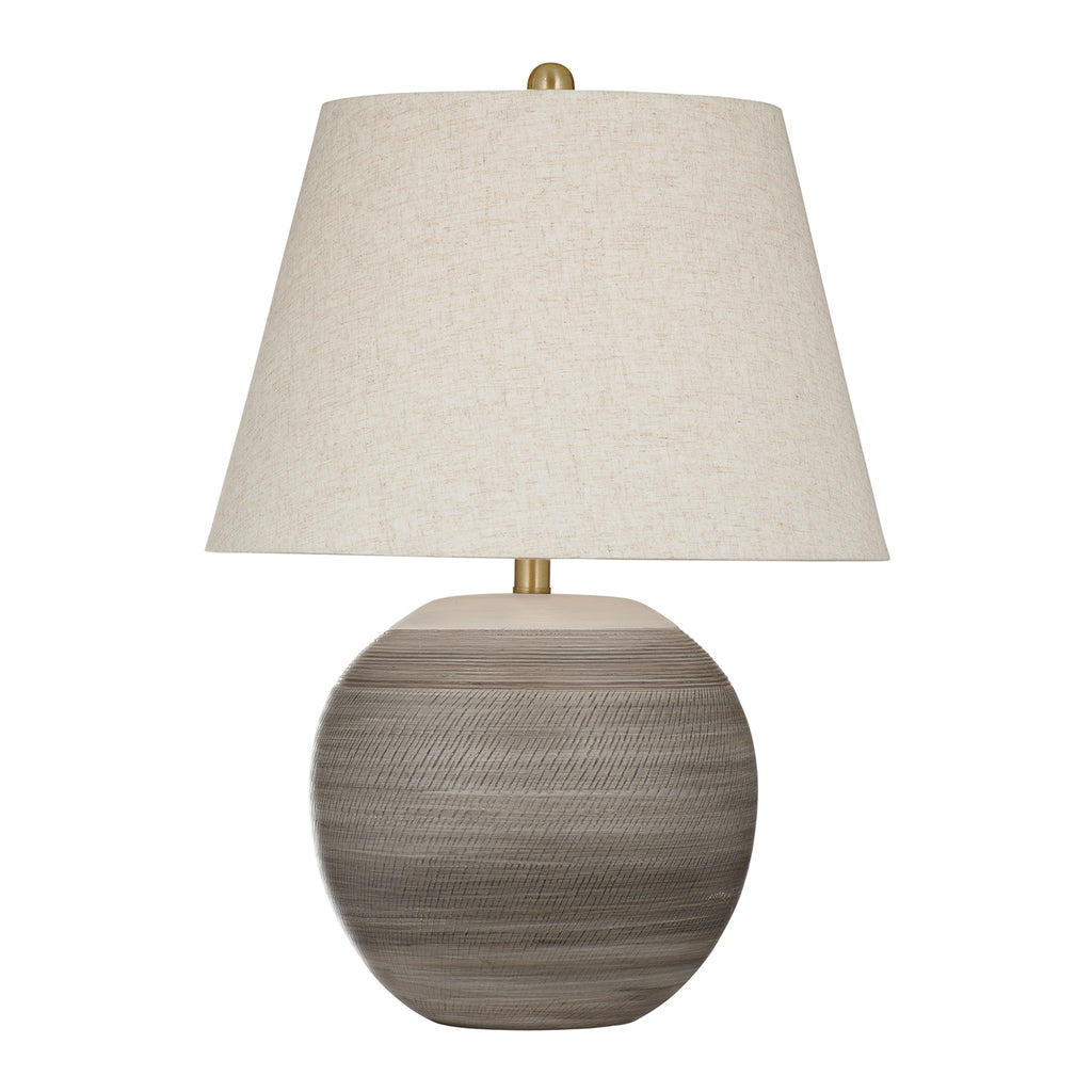 The Almaden Table Lamp blends modern rustic charm with a hint of boho character. Its textured base in earthy grey-brown tones offers a grounded, natural feel, while the tapered linen-style shade softens the look with warm, diffused light. Thoughtfully crafted, this lamp brings subtle texture and relaxed style to any room.