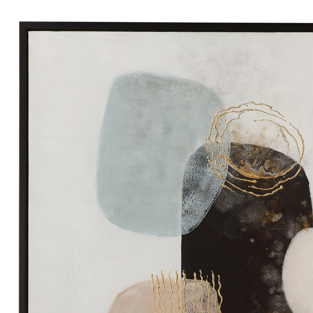 The Anthea framed canvas set of 2 is the perfect addition to any modern interior with organic shapes in various colors and sizes for visual interest. Each canvas is in a sleek black frame.