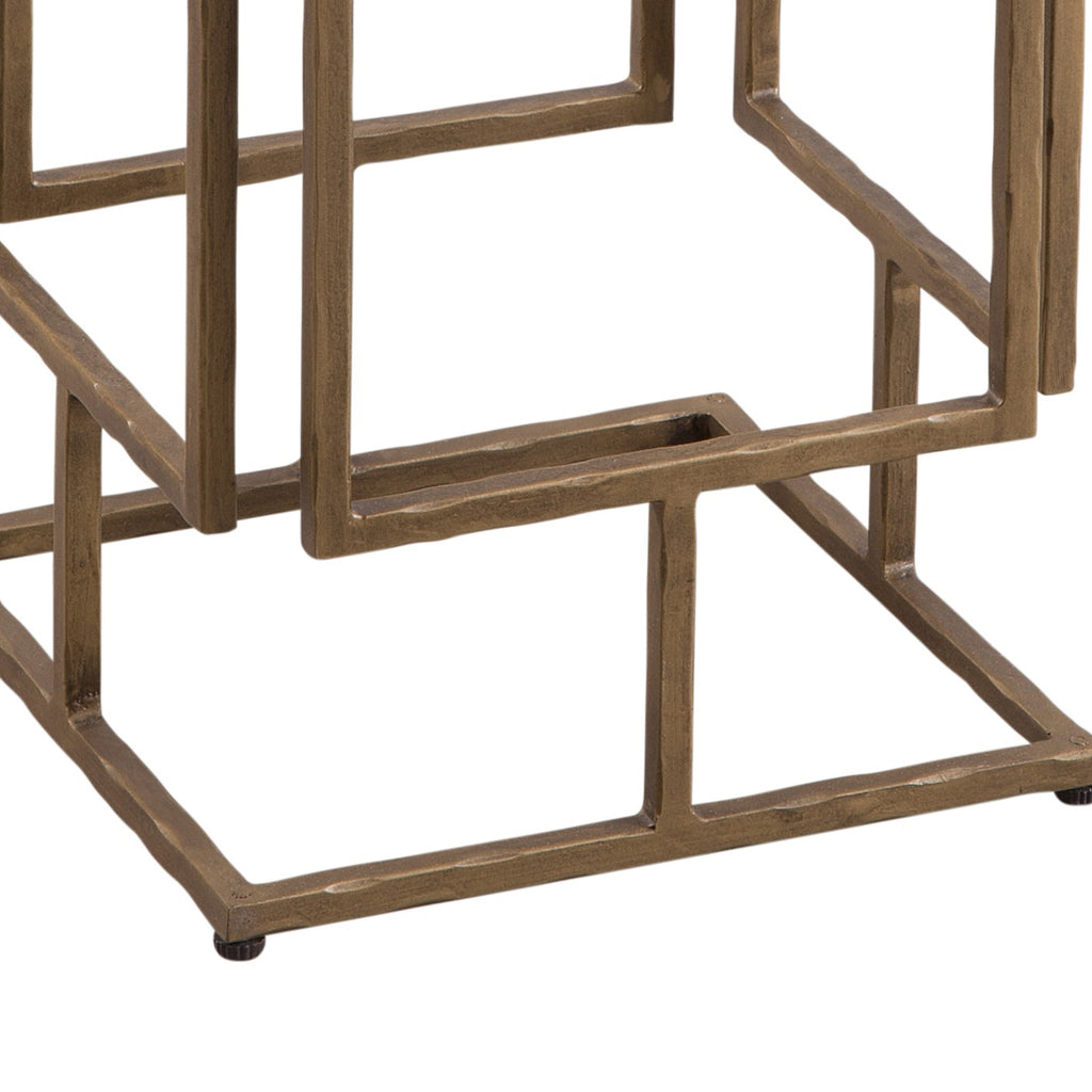 The Audrey Accent Table features a modern styling. The architecturally inspired iron base features an antique bronze finish. The accent table is completed with the solid Italian marble tabletop.