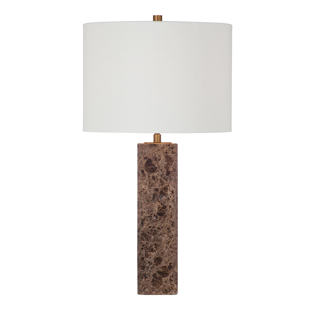 The Berrien Table Lamp brings a perfect blend of modern and traditional styles to your space. Its sleek brown marble base exudes a timeless elegance, while the crisp white linen drum shade softens the overall aesthetic, creating a versatile piece that can complement various decor styles. The 3-way switch adds functionality, allowing you to adjust the lighting to suit your mood or needs.