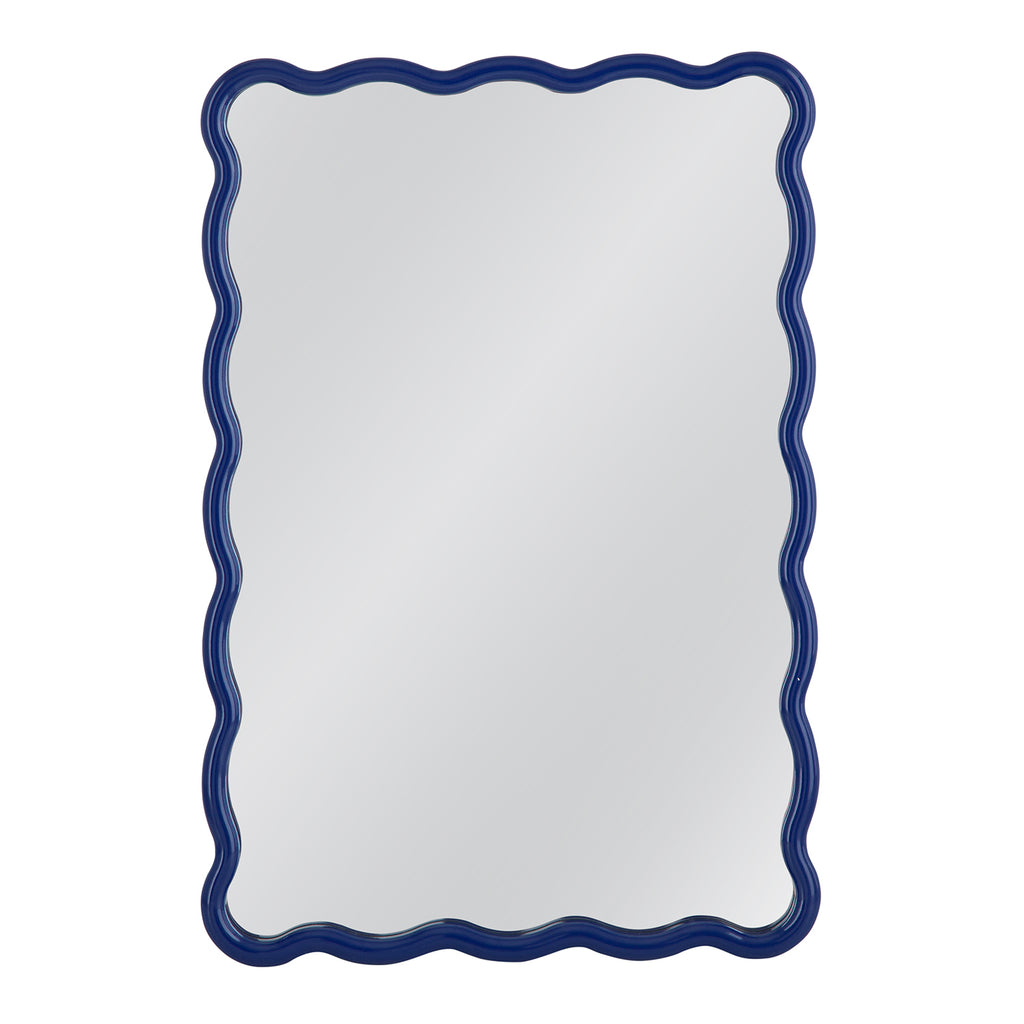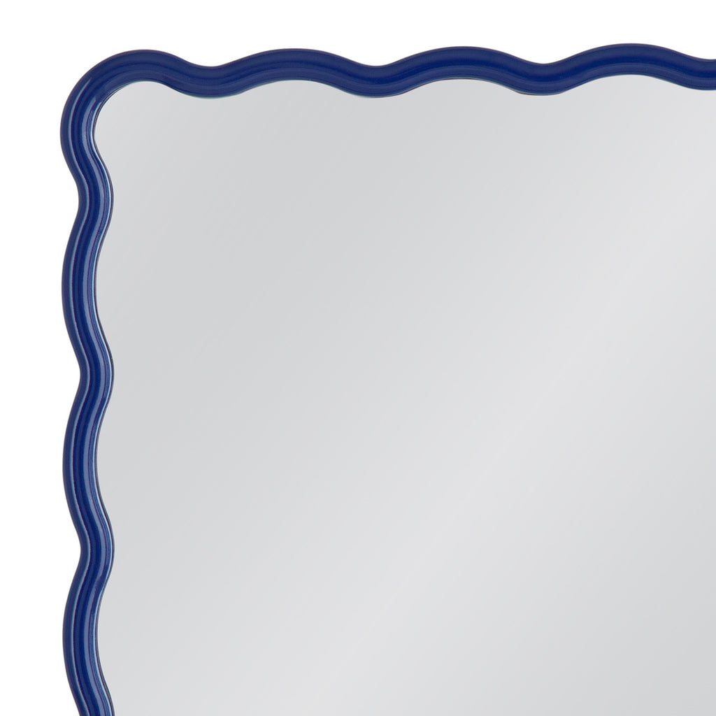 The Camellia Wall Mirror is a perfect accent to liven up your space, boasting a navy blue lacquered frame for a vibrant touch. Its wavy edges offer a playful twist on the traditional rectangular shape, adding character to any room. Crafted with a navy blue lacquered finish, this mirror effortlessly enhances any space.