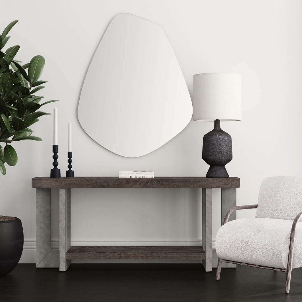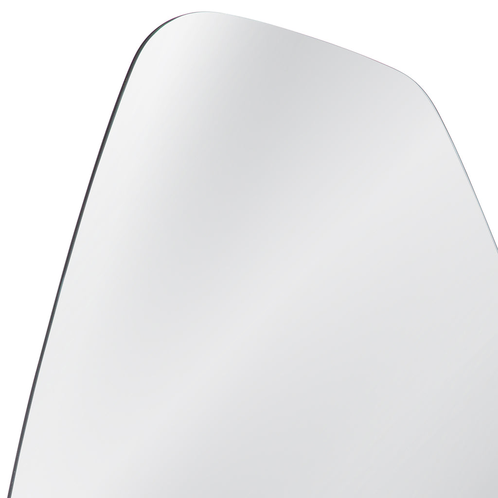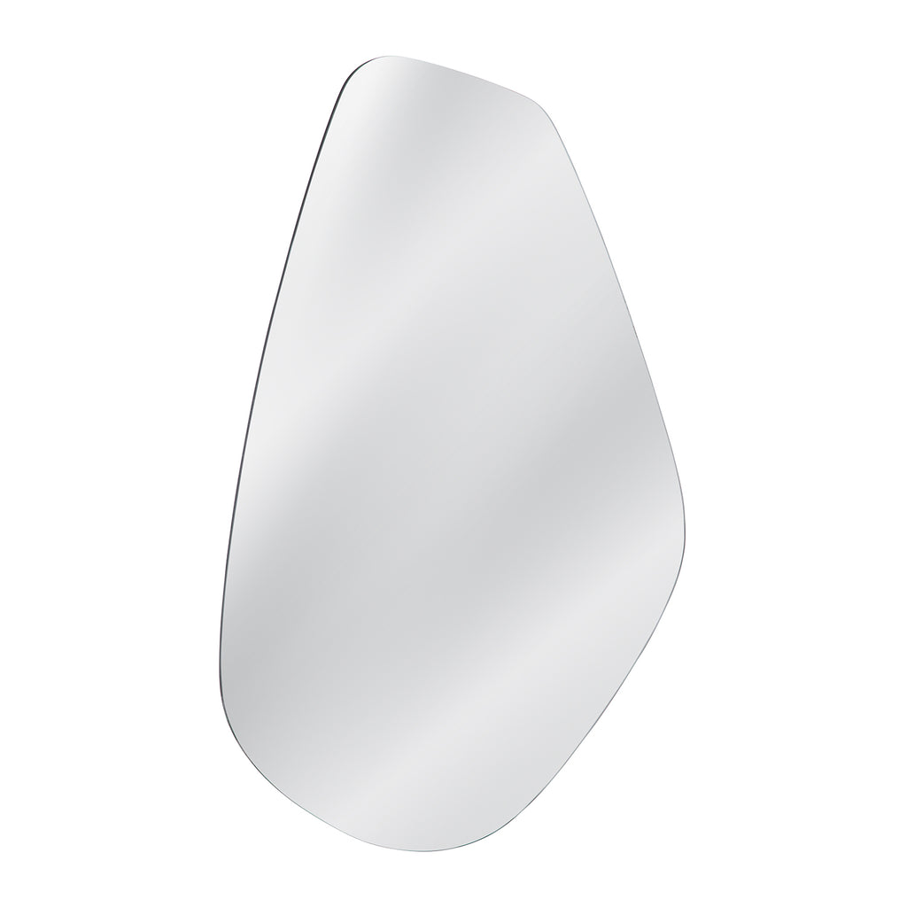 The Carlton Wall Mirror stands out with its unique asymmetrical shape, edged with a thin silver frame that adds just a touch of glamour without overwhelming its sleek modern style. The clean lines and irregular contour of this mirror provide a contemporary look, while the silver accent hints at a luxe aesthetic. It's a striking piece that would catch the eye in a minimalist or modern-themed space, bringing a sculptural element to the wall it adorns.