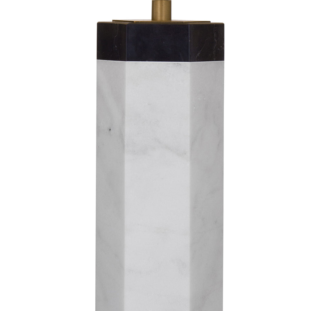 Discover the allure of the Charlie Table Lamp, a contemporary gem crafted with black and white marble. The octagonal-shaped lamp body adds a modern twist to the silhouette, complemented by a drum-shaped shade in elegant white linen. Enjoy adjustable illumination with the 3-way turn knob light switch, and with a generous 60-inch lamp cord, placement becomes effortless. Elevate your space with this modern marvel that seamlessly blends style and functionality.