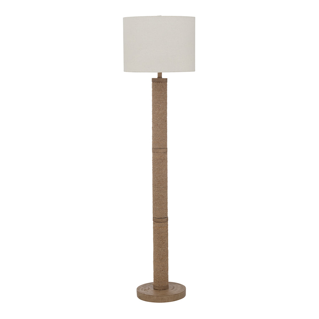 The Chester Floor Lamp offers a delightful fusion of boho design and coastal aesthetics, bringing a relaxed vibe to any room. Featuring charming rope detailing, it adds a touch of rustic charm to its modern silhouette. The drum shade casts a moody yet inviting glow, creating a cozy atmosphere for relaxation or entertaining. With its versatile style, this lamp effortlessly complements various decor themes, from coastal cottages to urban lofts. Illuminate your space with the warm ambiance and understated elegance of the Chester floor lamp.