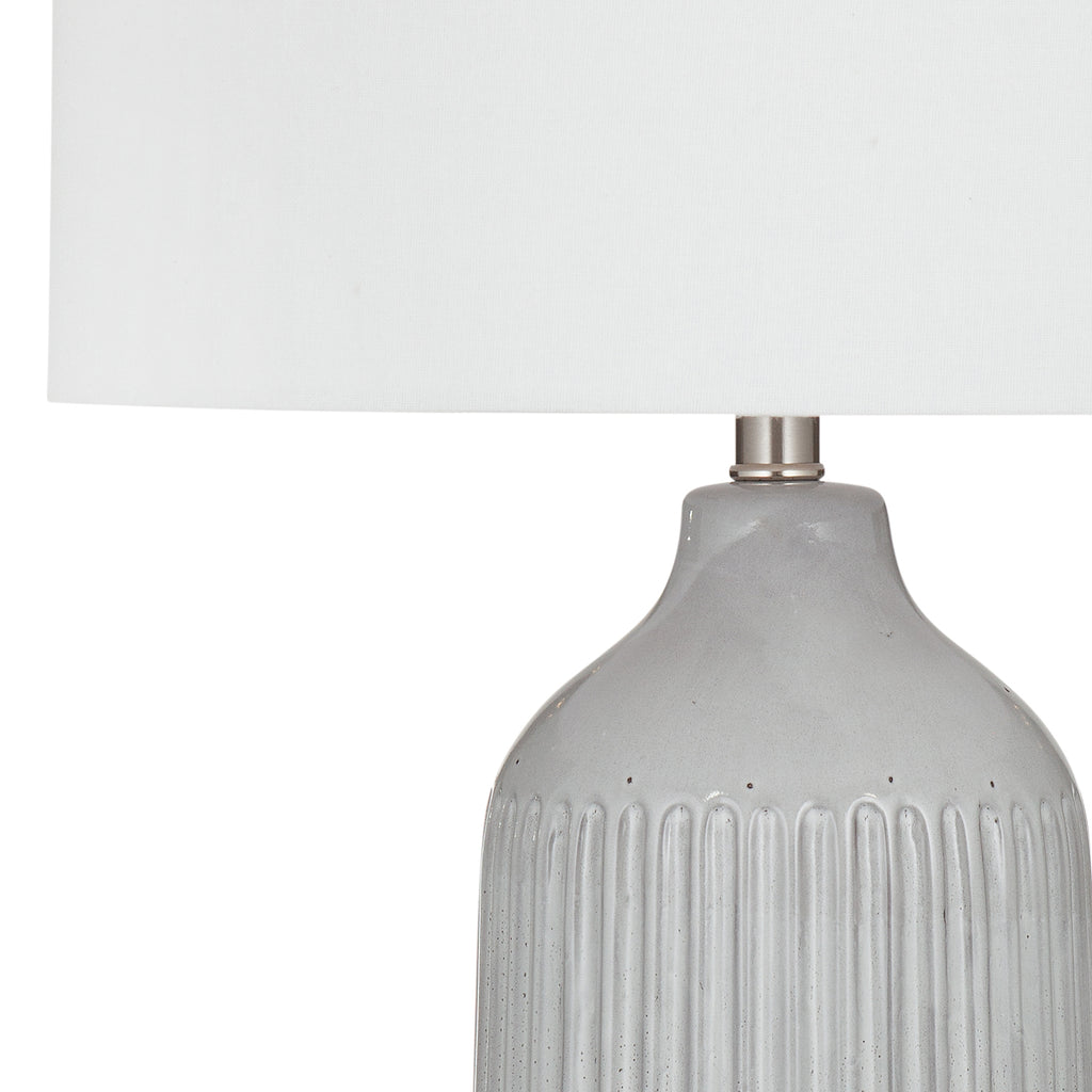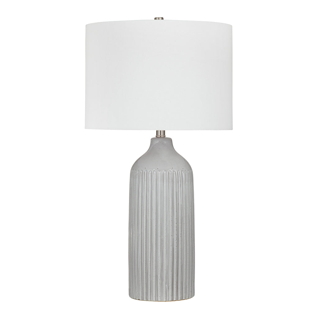 The Dorchester Table Lamp blends traditional character with a refined contemporary touch. Its grey ceramic base features subtle carved detailing, adding depth and texture while maintaining a clean, timeless silhouette. Topped with a crisp white drum shade, this lamp offers a soft, balanced glow—perfect for elevating classic or transitional interiors with understated elegance.