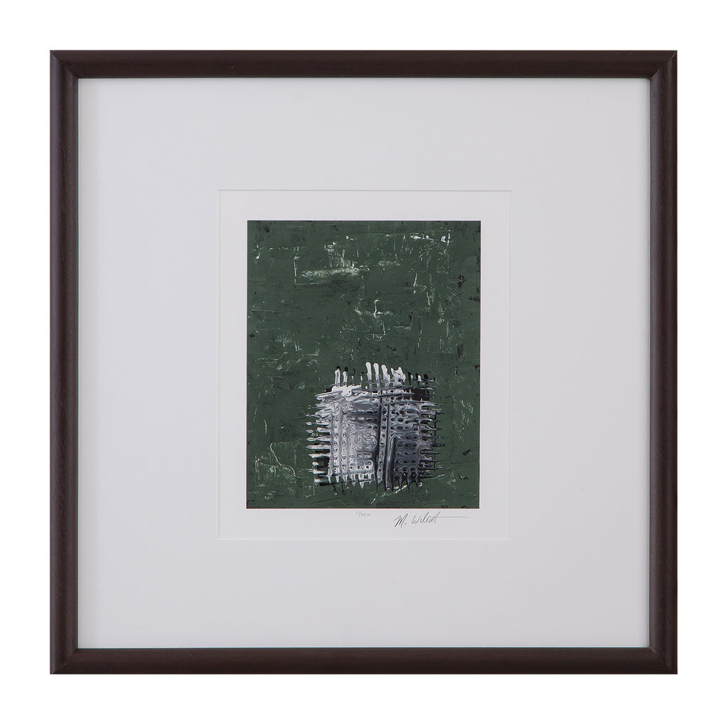 Dual Dichotomy III is a limited edition print, signed and numbered by the artist and printed on fine art cotton rag paper. The print is framed in a 1in brown woodtone frame with a white matboard.
