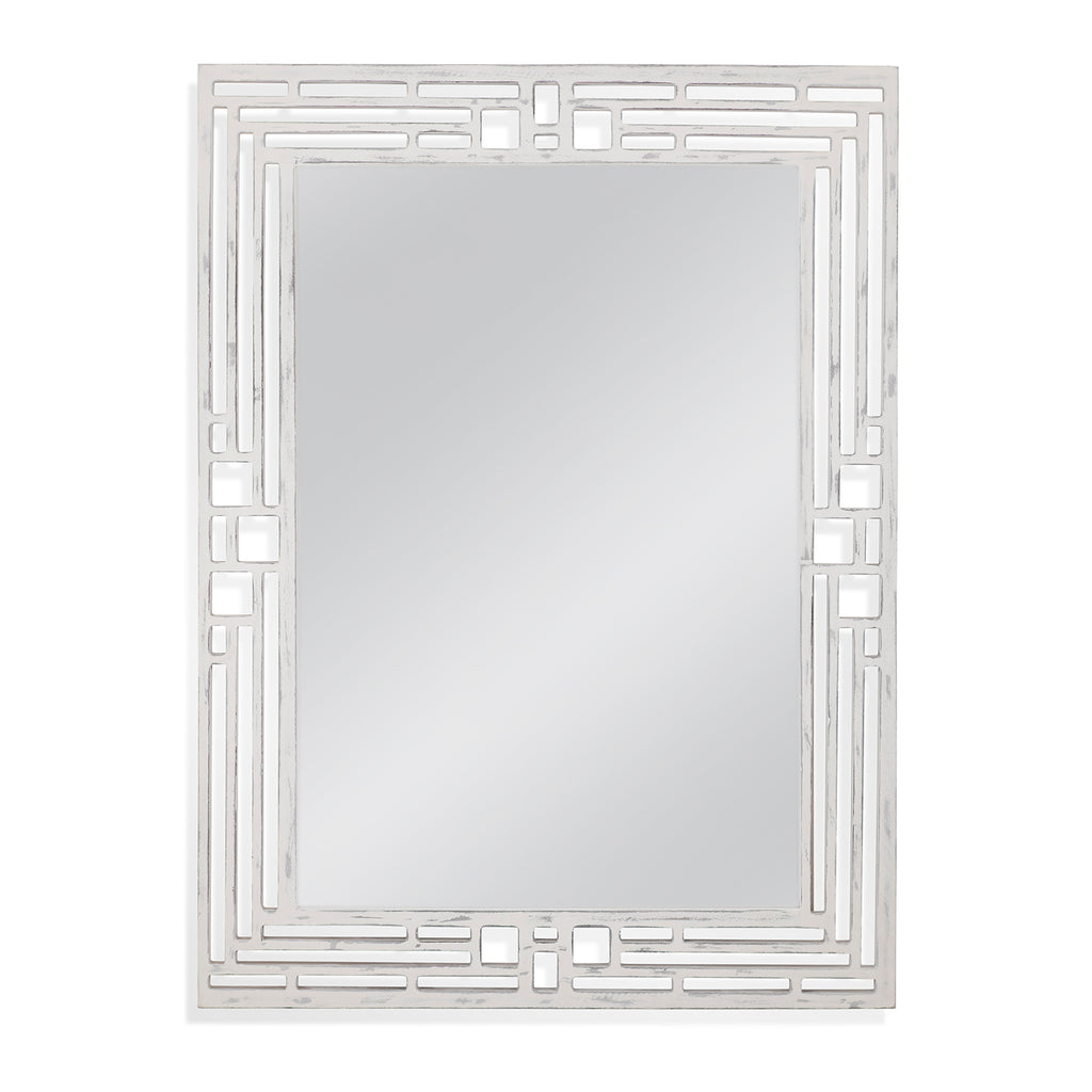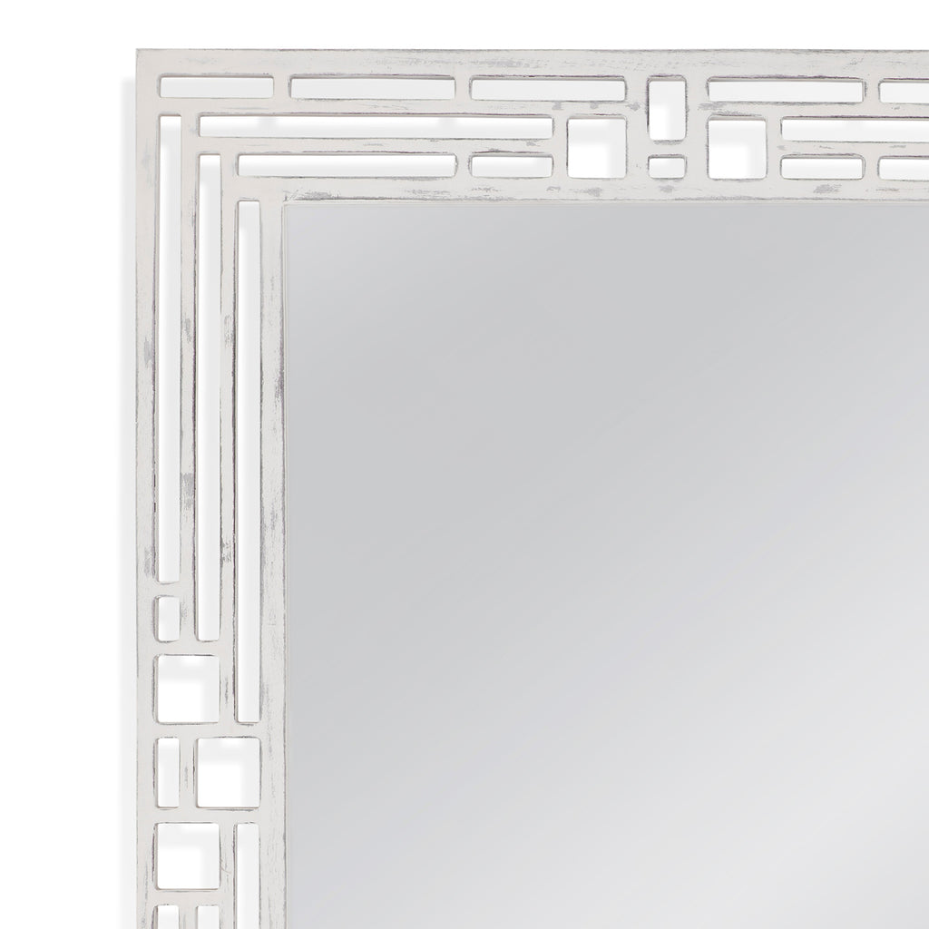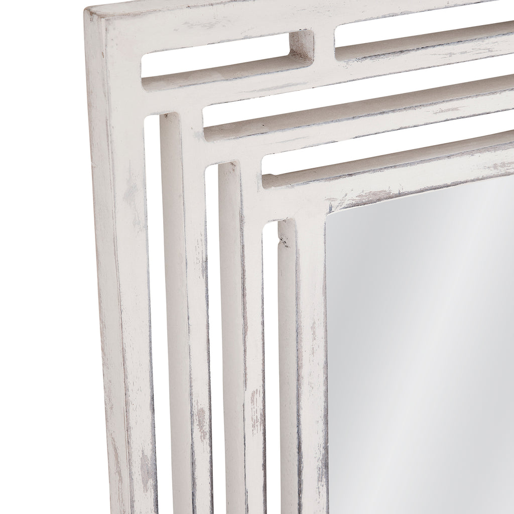 The Epsilon wall mirror is rectangular with a cutout geometric frame.