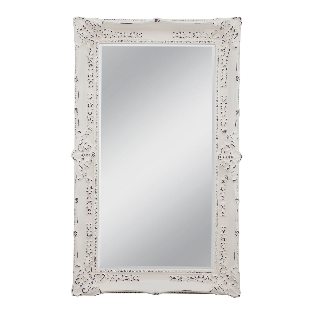 The Garland Wall Mirror embodies timeless elegance with its traditional rectangular design. Crafted from antique white wood, it showcases intricate floral pattern carvings that evoke a vintage charm. Enhanced by a distressed finish, this mirror exudes an antique allure, making it a captivating addition to any space.