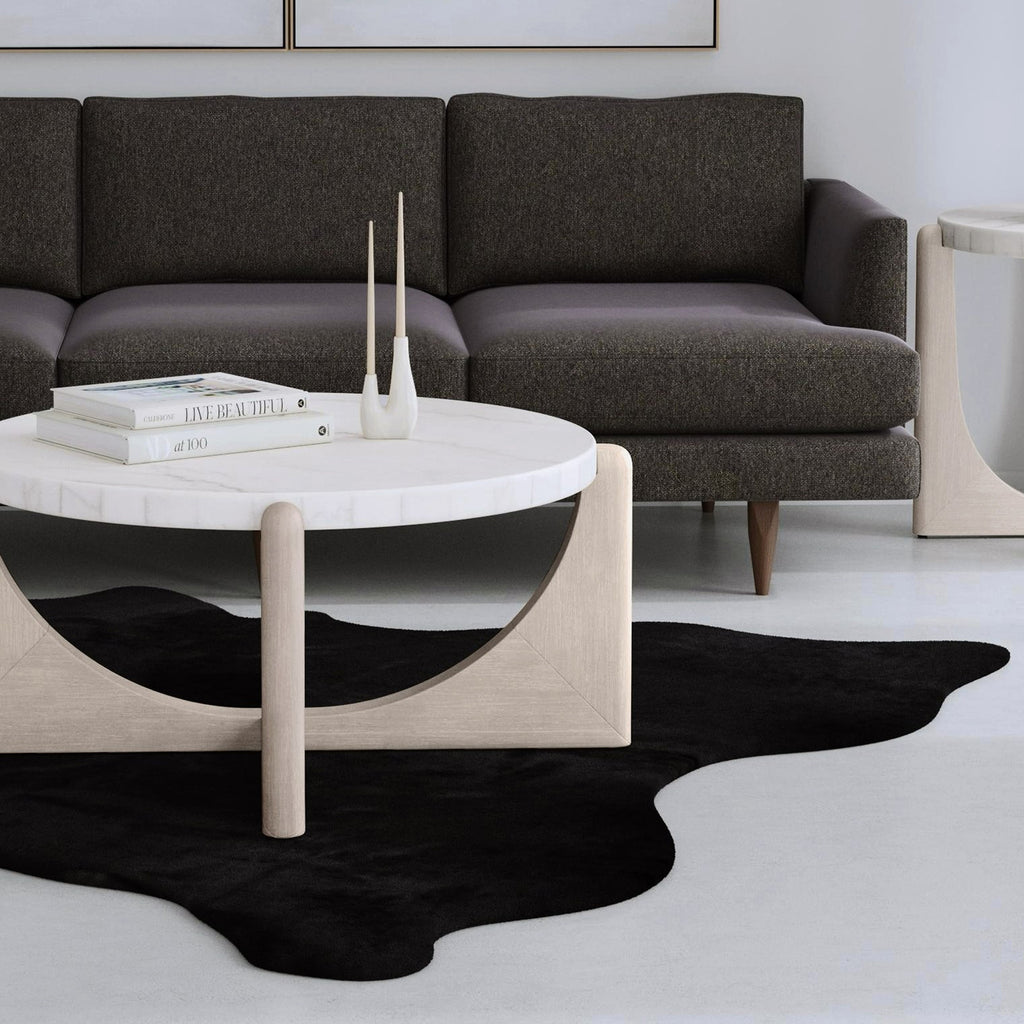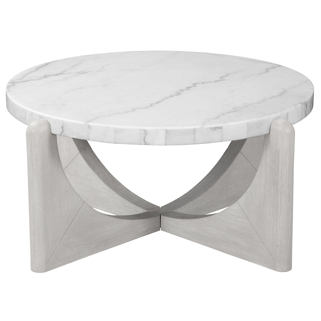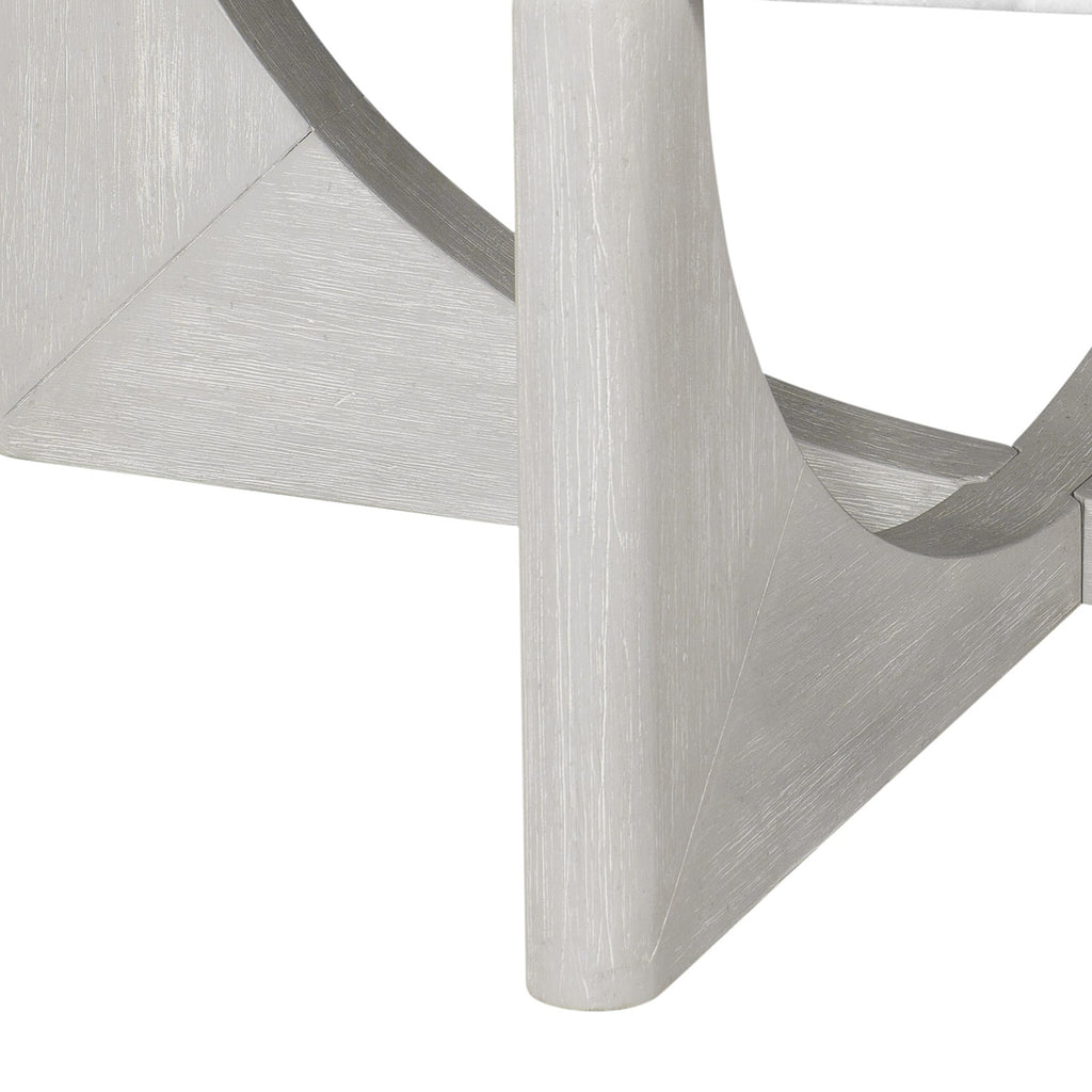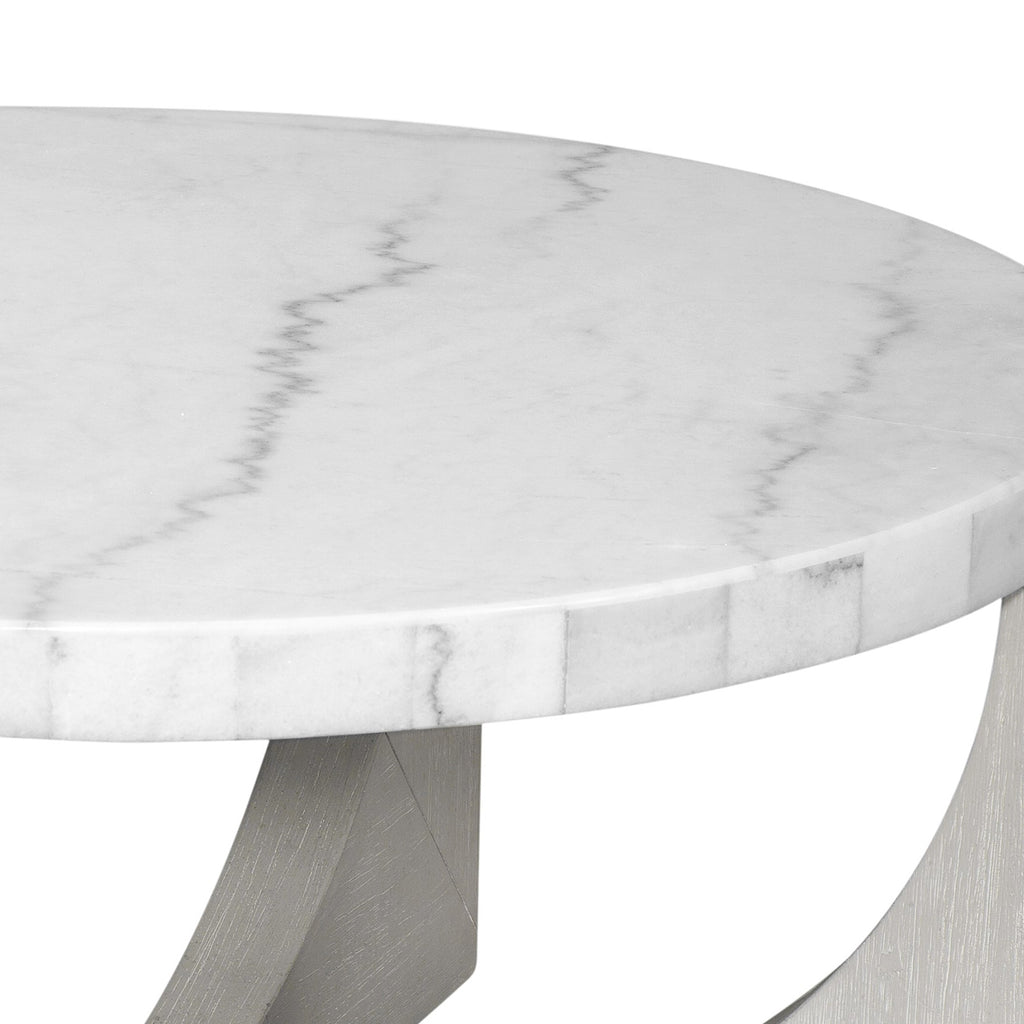 The Gavin Cocktail Table blends modern styling with timeless craftsmanship. Featuring a solid wire brushed frame in a calming driftwood finish, this table embodies thoughtful design and reliability. The dramatic oversized white marble top adds sophistication, creating a charming accent for your space.