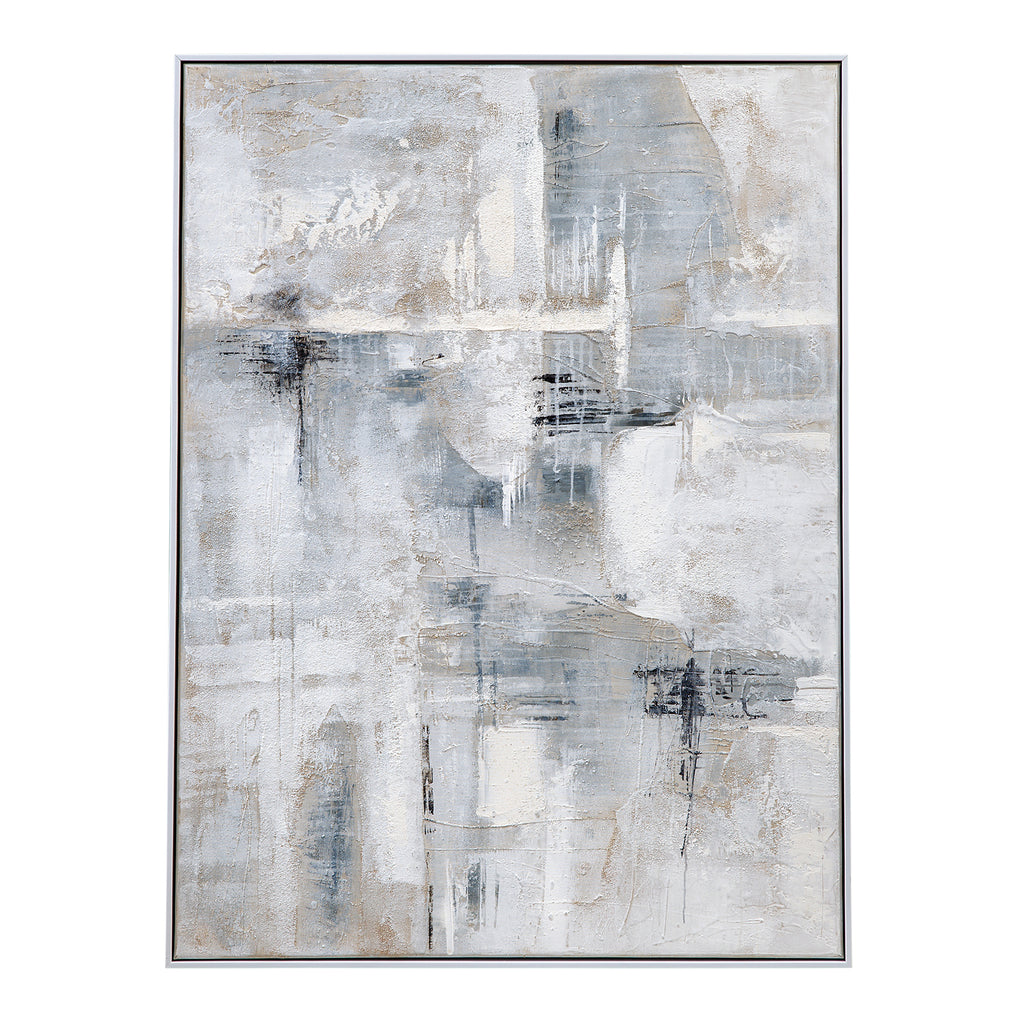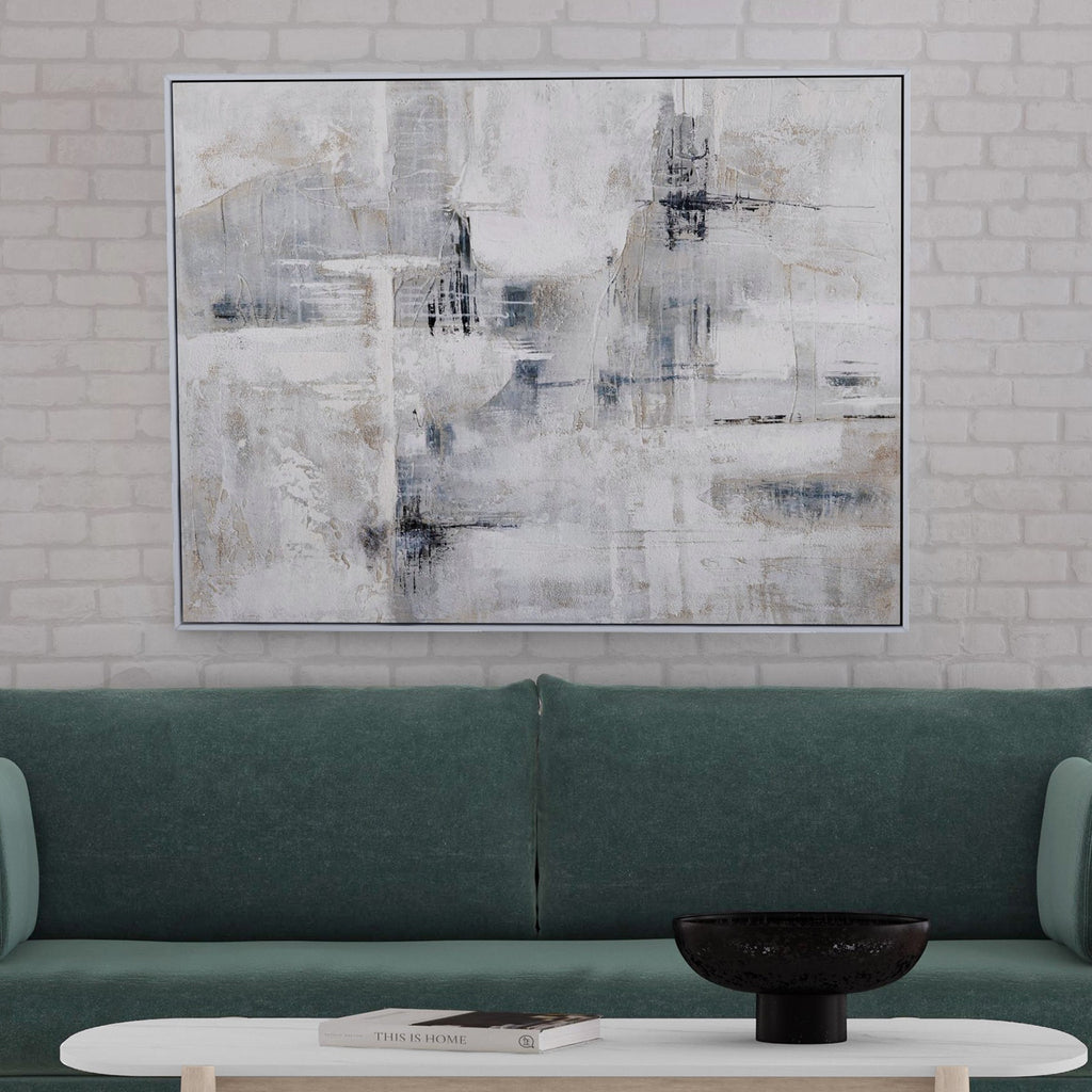 The Gray Day Canvas Art captures the ephemeral beauty of a misty, overcast sky with its palette of cool grays and subtle whites. The abstract composition evokes the tranquil mood of a quiet, introspective day. Framed in white, this piece brings a modern, airy feel to any space, effortlessly complementing a range of interior decors with its versatile color scheme and thoughtful design. It's an artful addition that's both soothing and visually compelling, perfect for creating a reflective and sophisticated atmosphere
