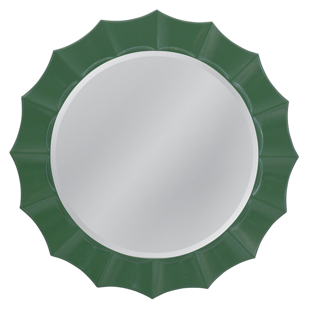 The Green Altair Wall Mirror features a round design with inverted curved frame detailing, adding a striking touch to any space. The rich green finish brings a bold, modern flair, making it an eye-catching piece in your home. Whether hung in a living room, bedroom, or hallway, this mirror complements a variety of interiors with its contemporary style. The unique frame and vibrant color offer a perfect balance of elegance and boldness, enhancing the room with both functionality and design.