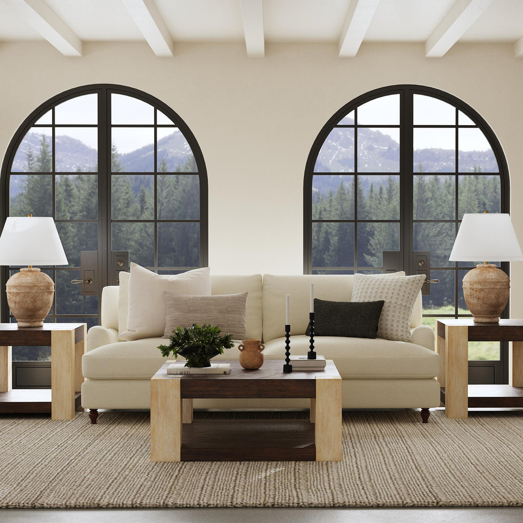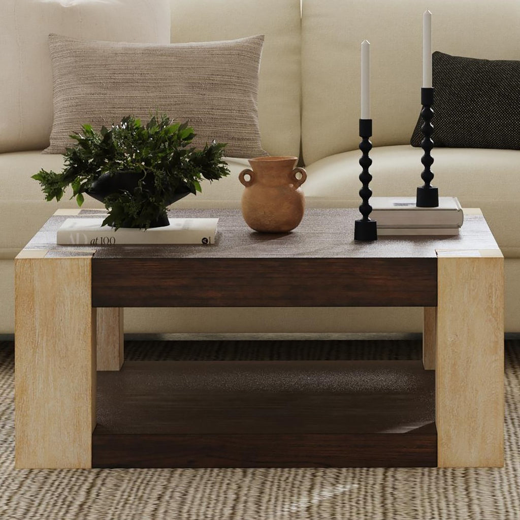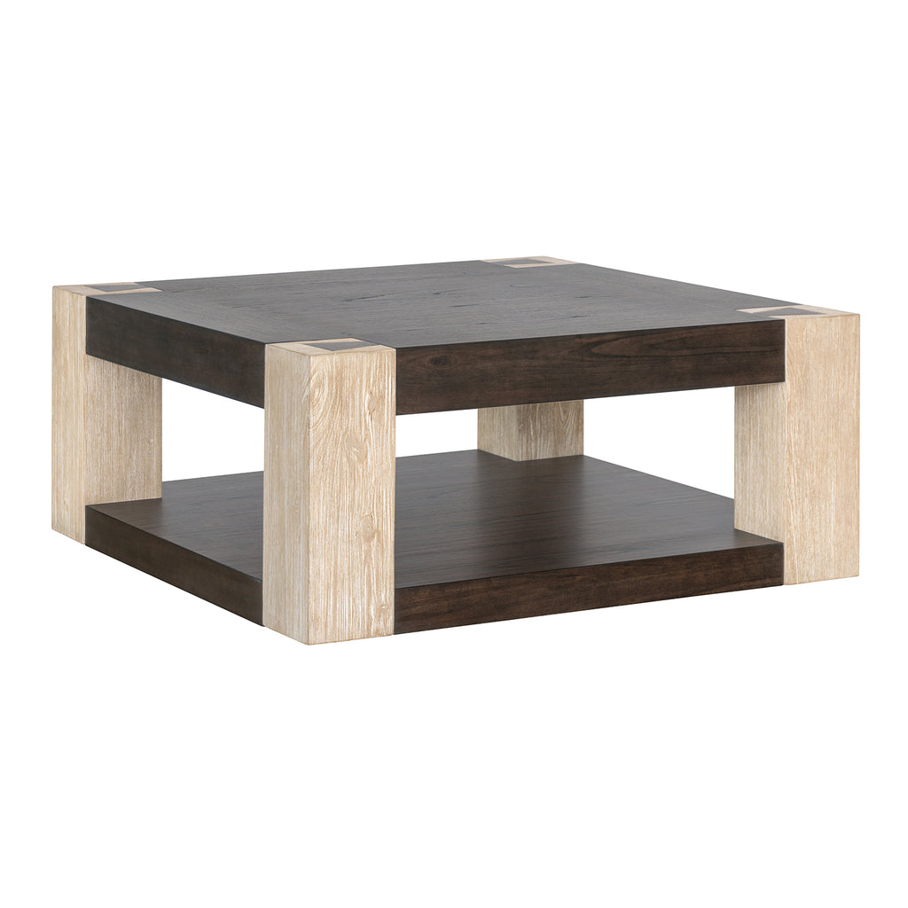 The Harmony Cocktail Table embodies a blend of contemporary and modern aesthetics, making it a statement piece for any living room. Crafted from sturdy wood and veneers, its blocky design is minimalist yet striking. The table showcases a captivating contrast between the carbon mindi and blonde acacia finishes, adding depth to its appearance. With wirebrushed legs and simulated dovetail joint designs on the tops, it exudes sophistication and attention to detail. Additionally, the inclusion of a bottom shelf not only provides extra storage but also conceals casters, ensuring effortless mobility. Thanks to the manual wire-brushing process, each piece boasts unique textural variations, enhancing its appeal. Elevate your space with the Harmony cocktail table, a testament to minimalism and contemporary elegance.